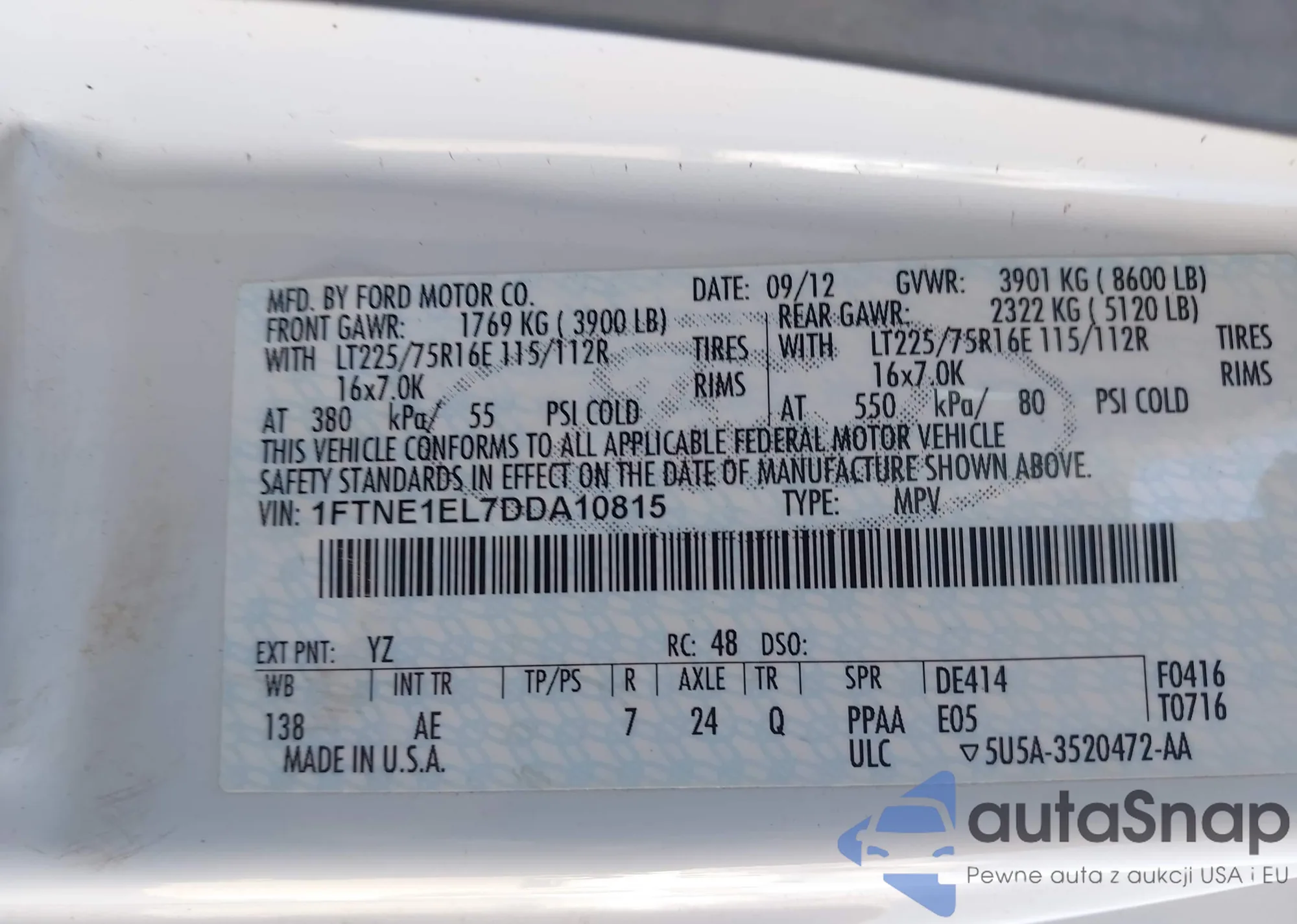 VIN: 1FTNE1EL7DDA10815