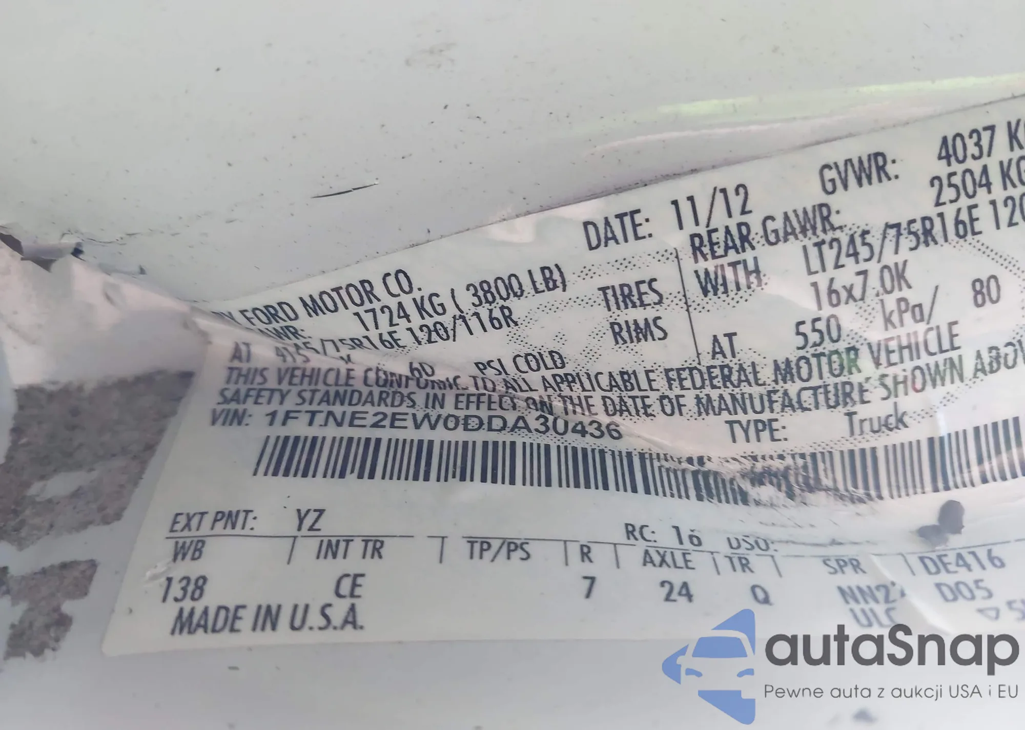 VIN: 1FTNE2EW0DDA30436
