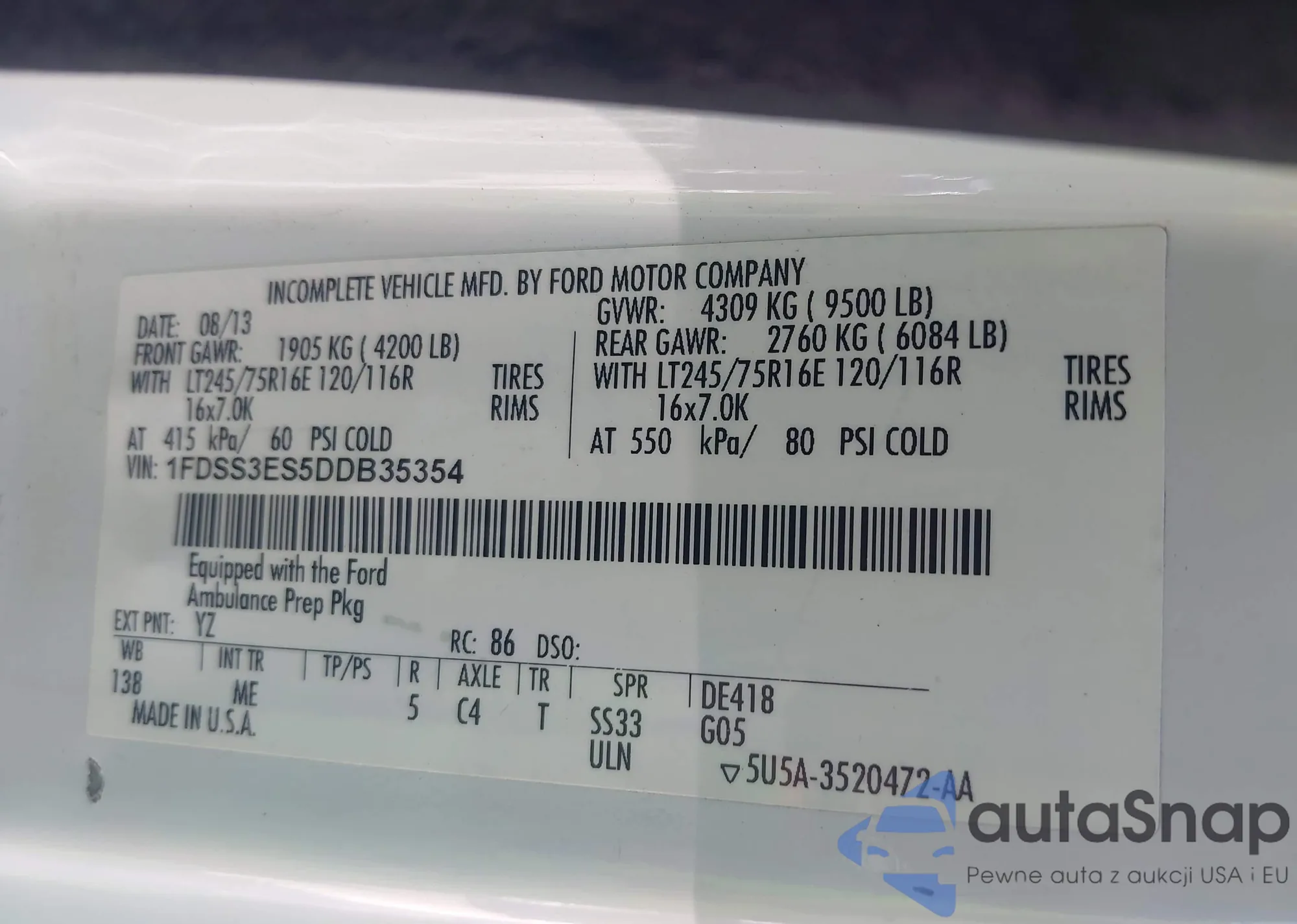 VIN: 1FDSS3ES5DDB35354
