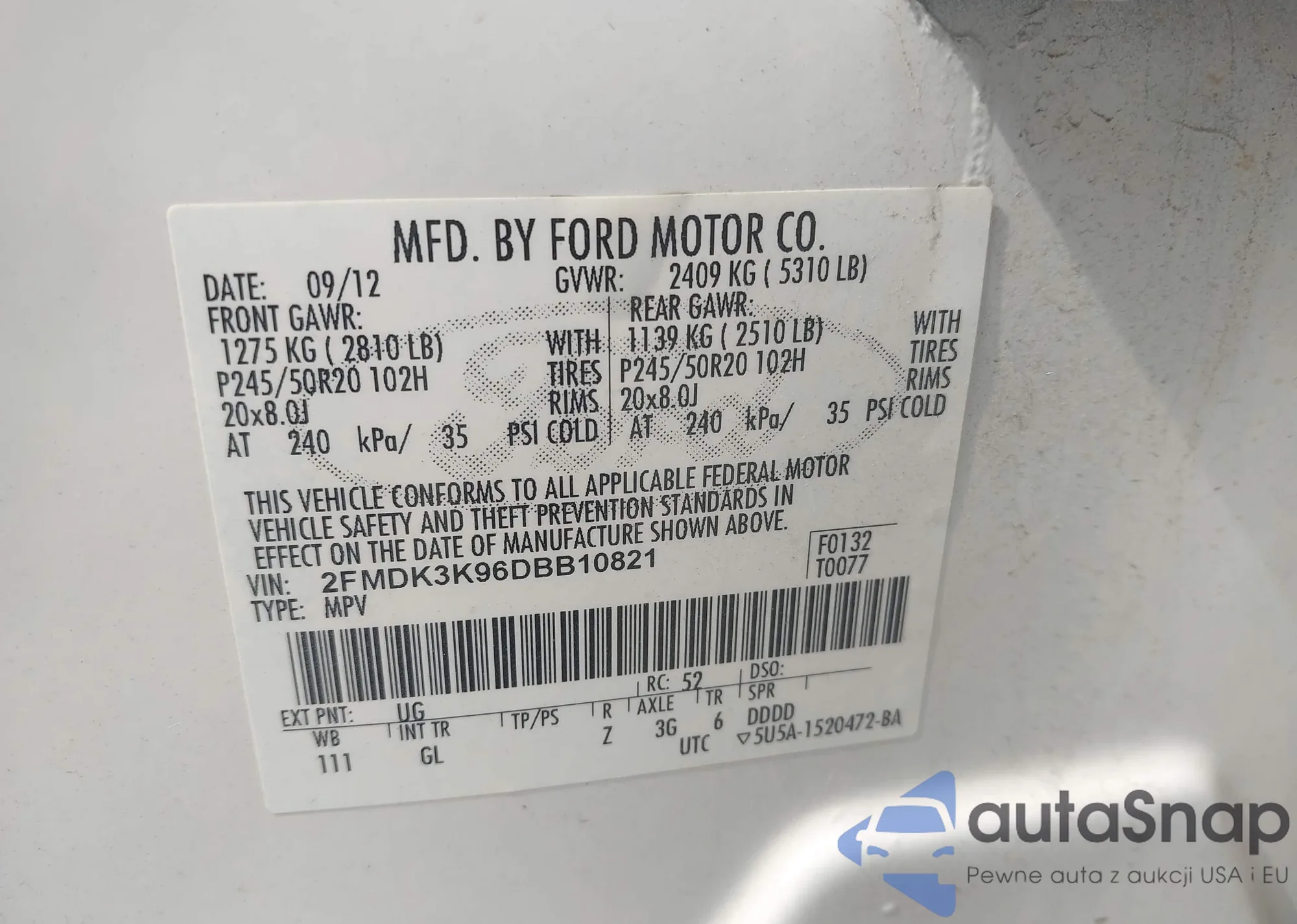 VIN: 2FMDK3K96DBB10821