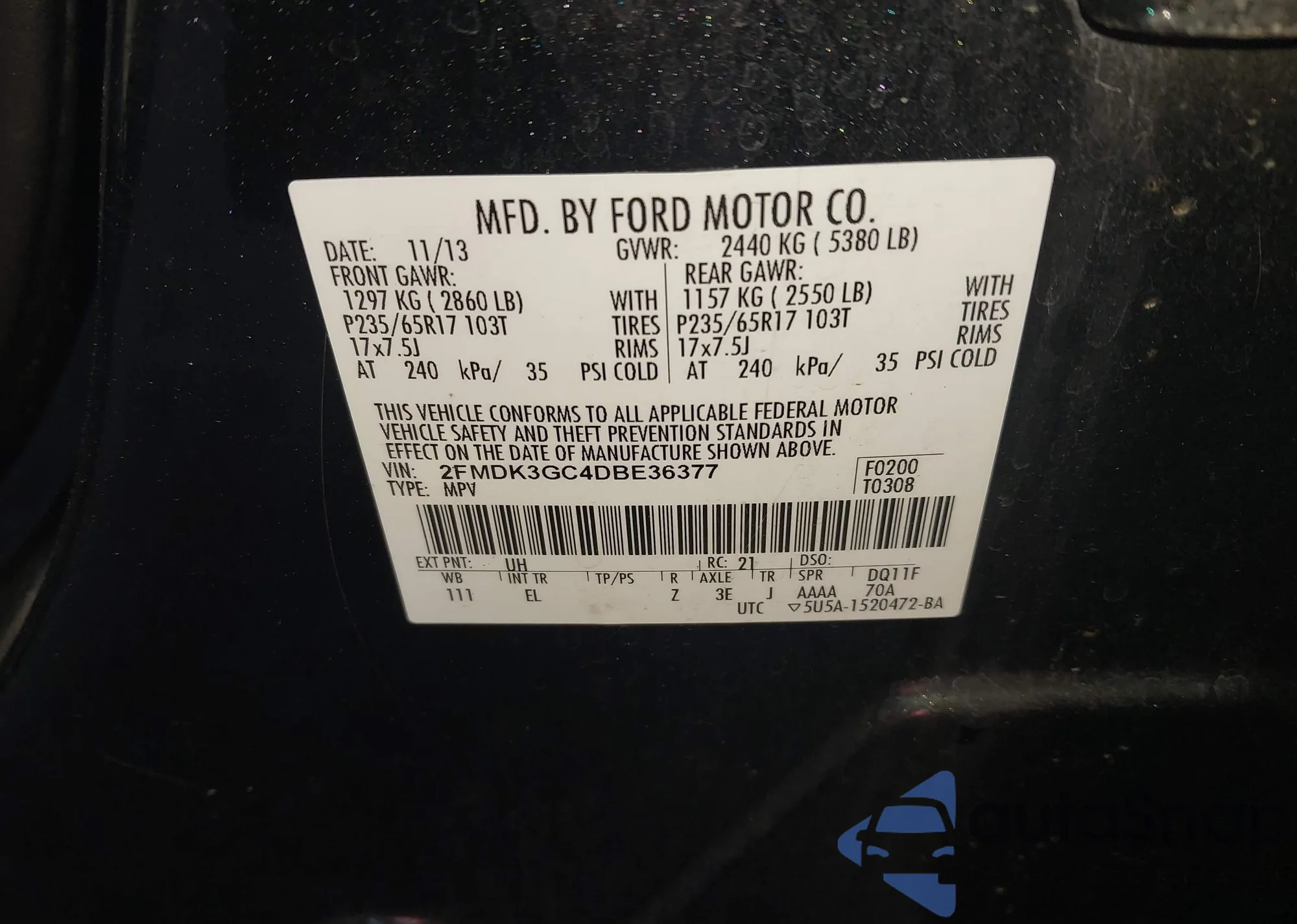 VIN: 2FMDK3GC4DBE36377