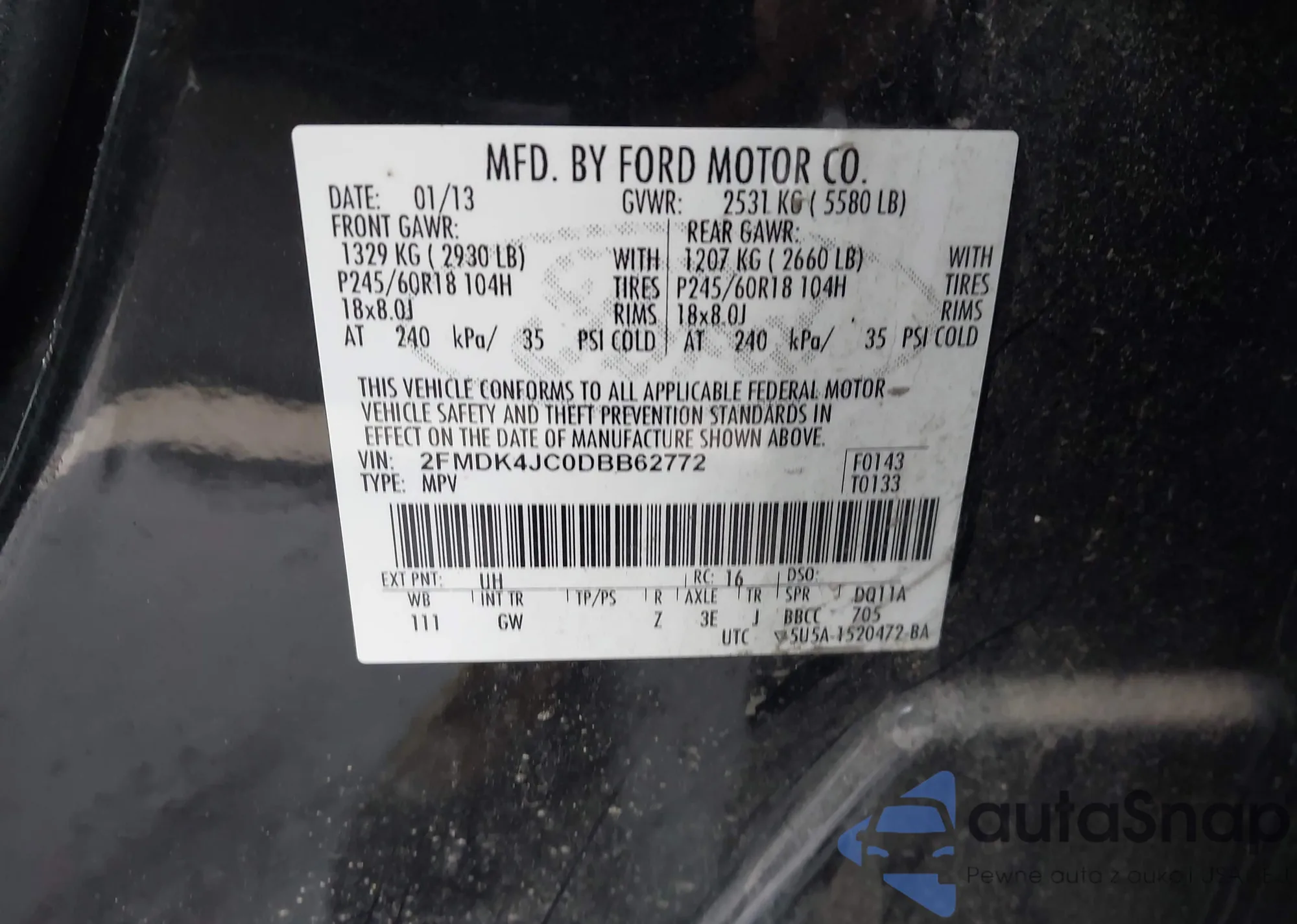 VIN: 2FMDK4JC0DBB62772
