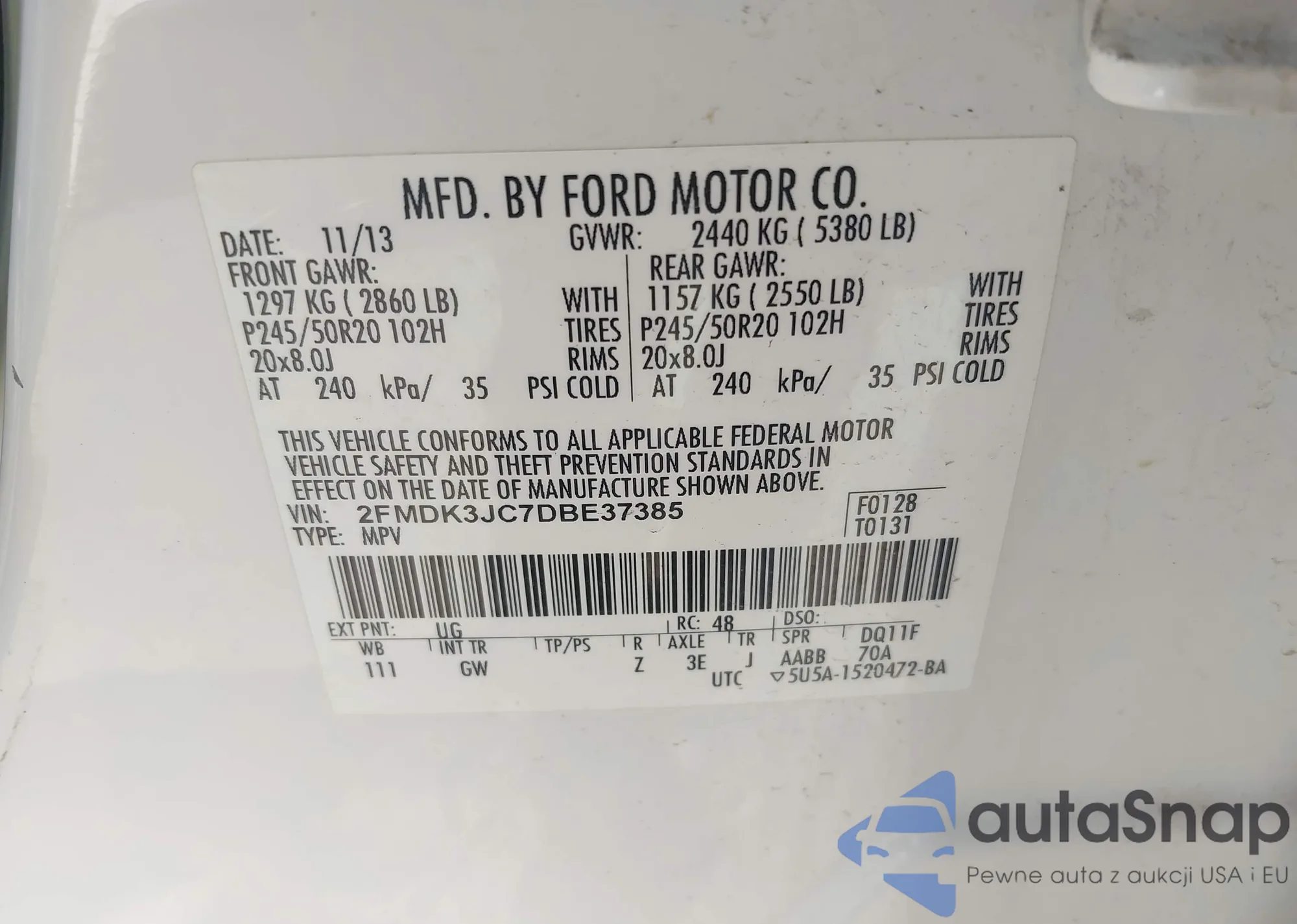 VIN: 2FMDK3JC7DBE37385