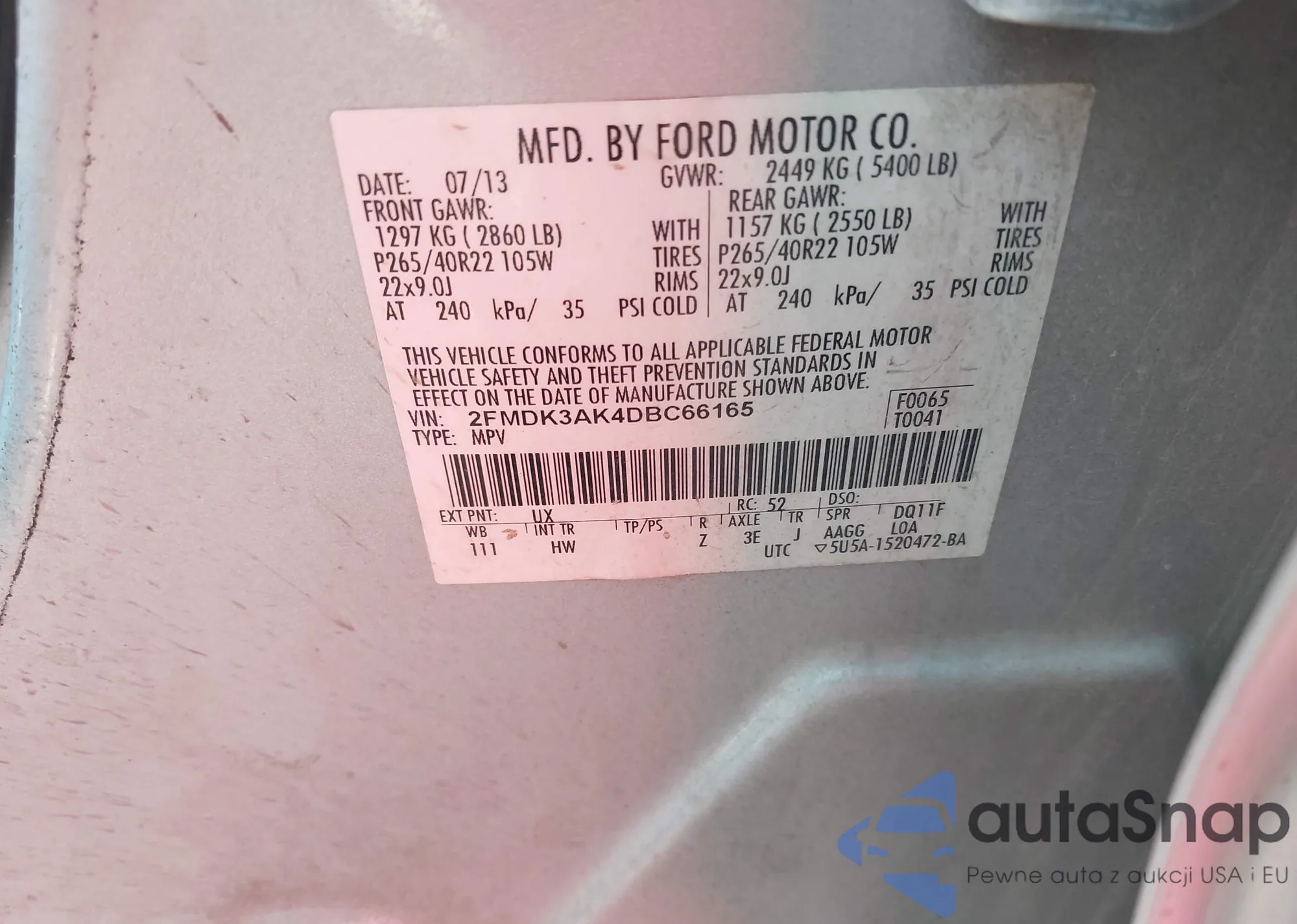 VIN: 2FMDK3AK4DBC66165