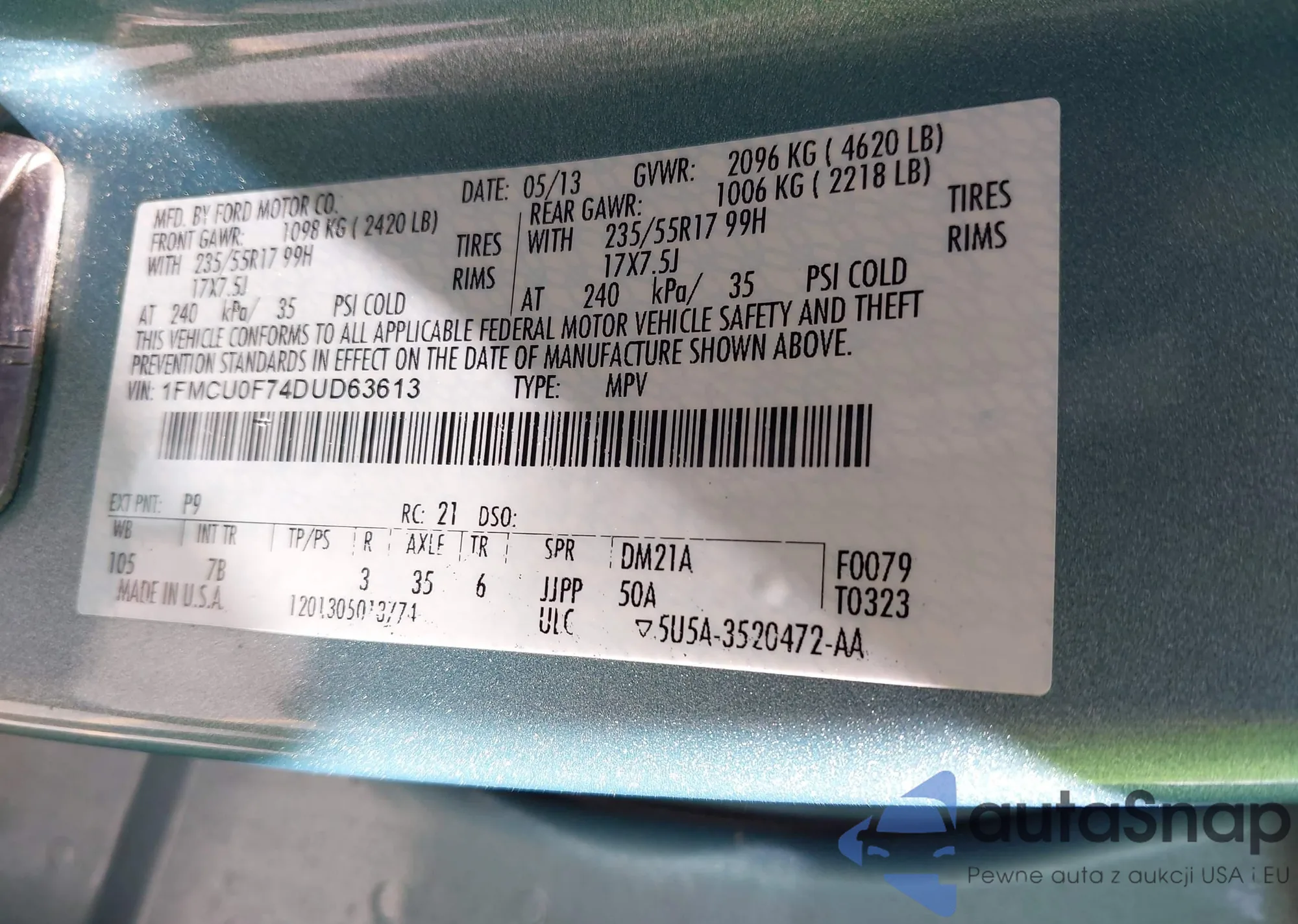 • VIN: 1FMCU0F74DUD63613