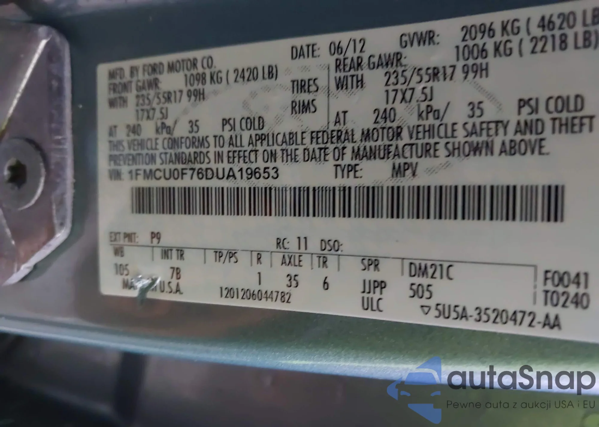 VIN: 1FMCU0F76DUA19653