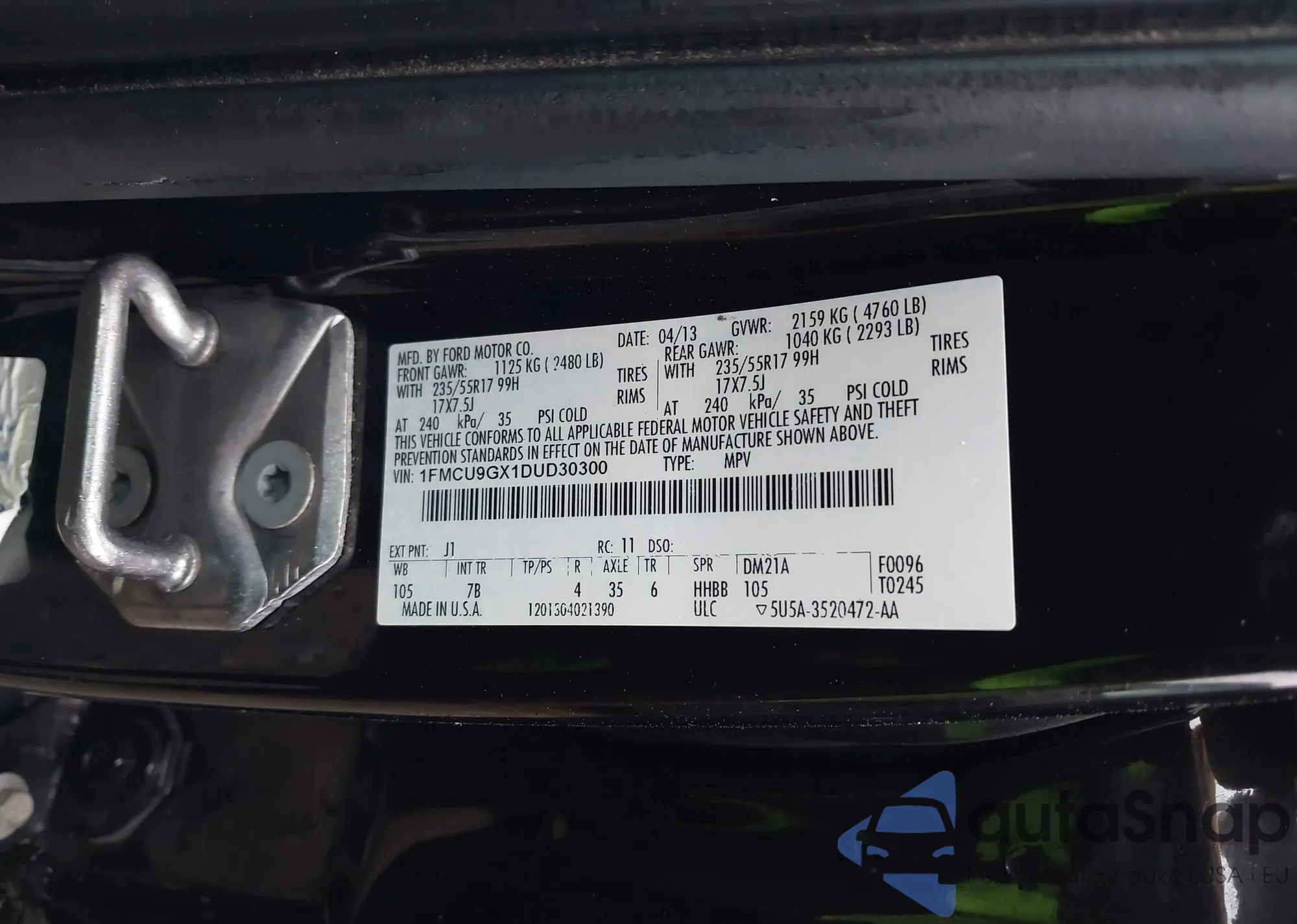 VIN: 1FMCU9GX1DUD30300