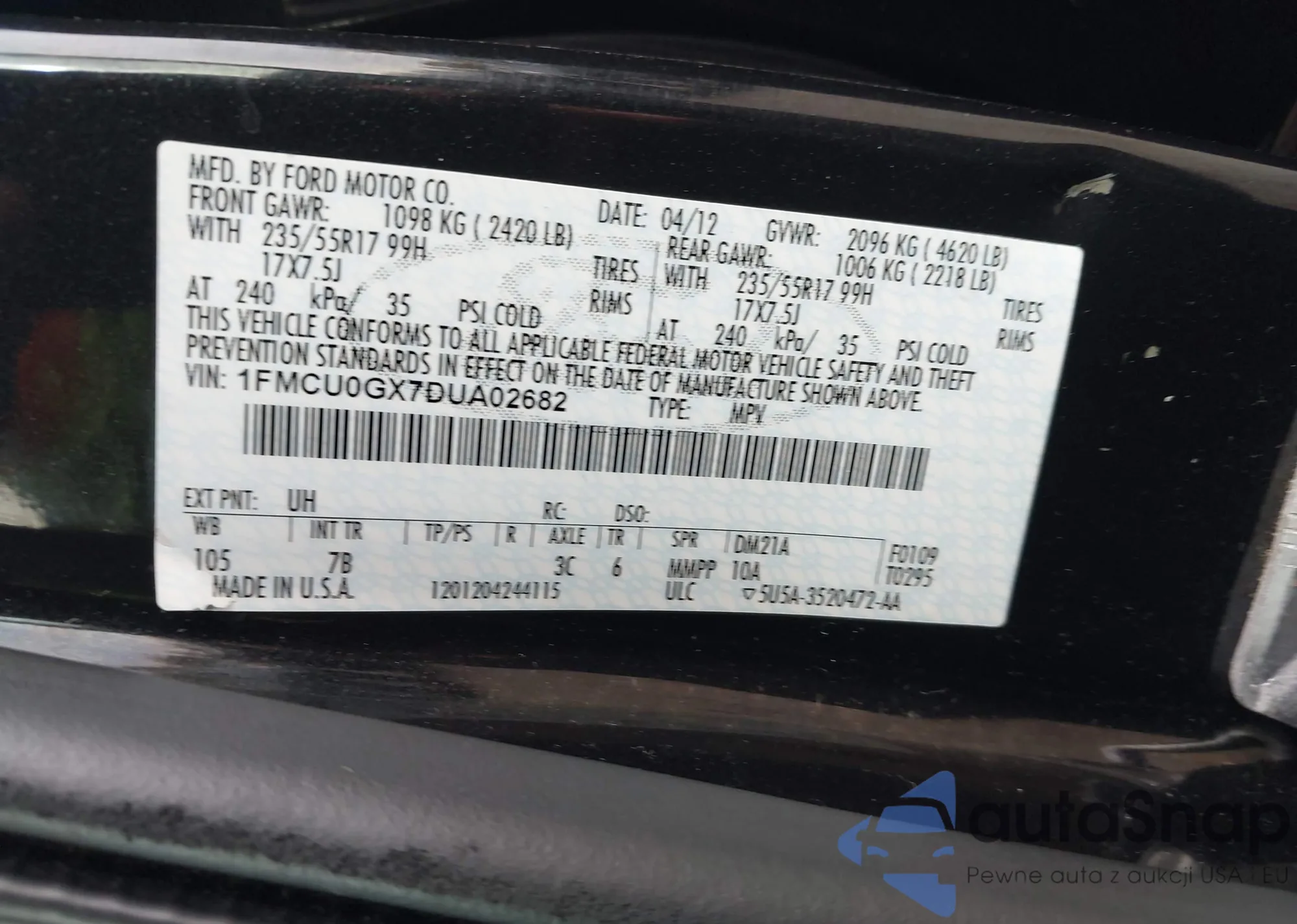 • VIN: 1FMCU0GX7DUA02682