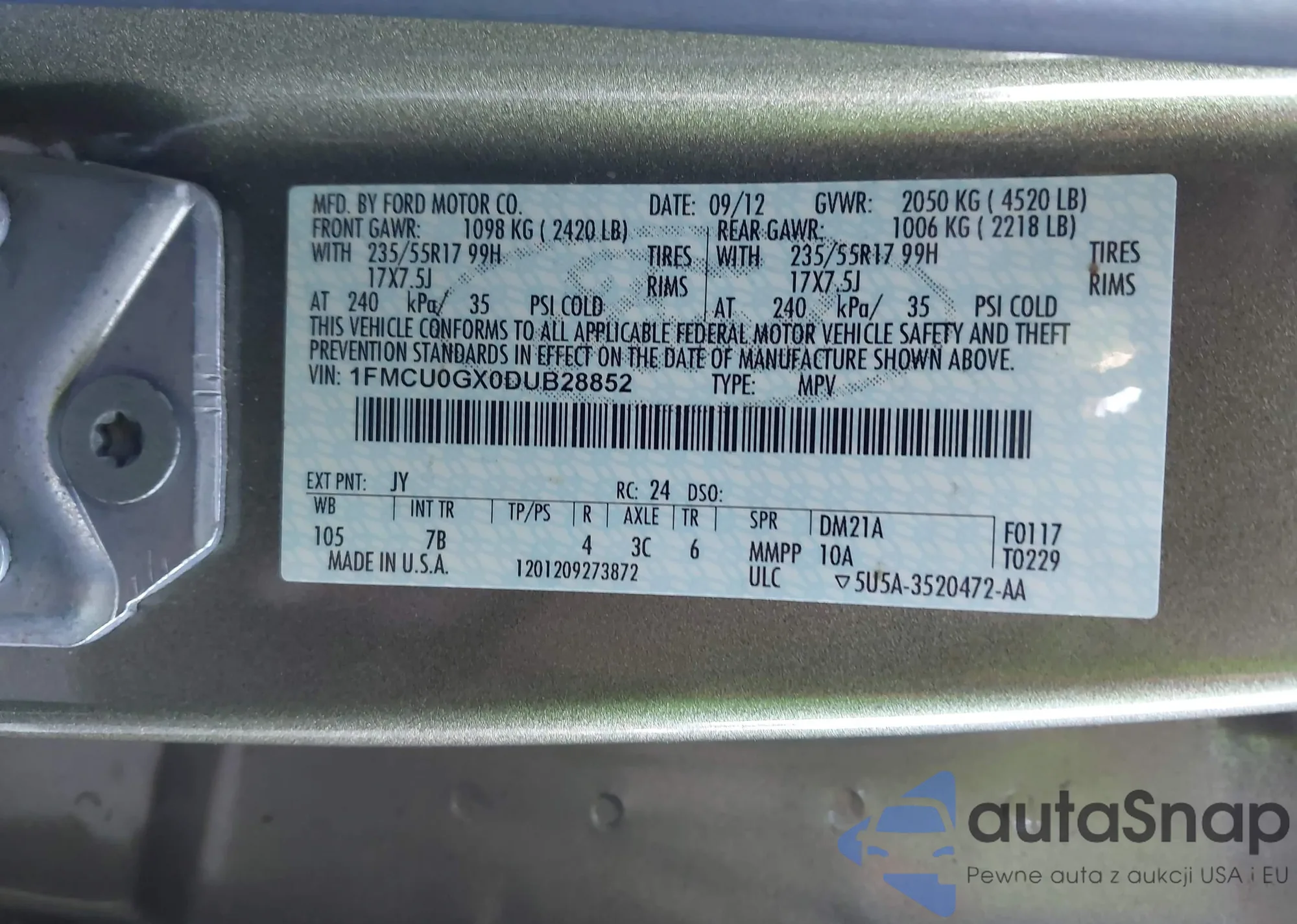 VIN: 1FMCU0GX0DUB28852