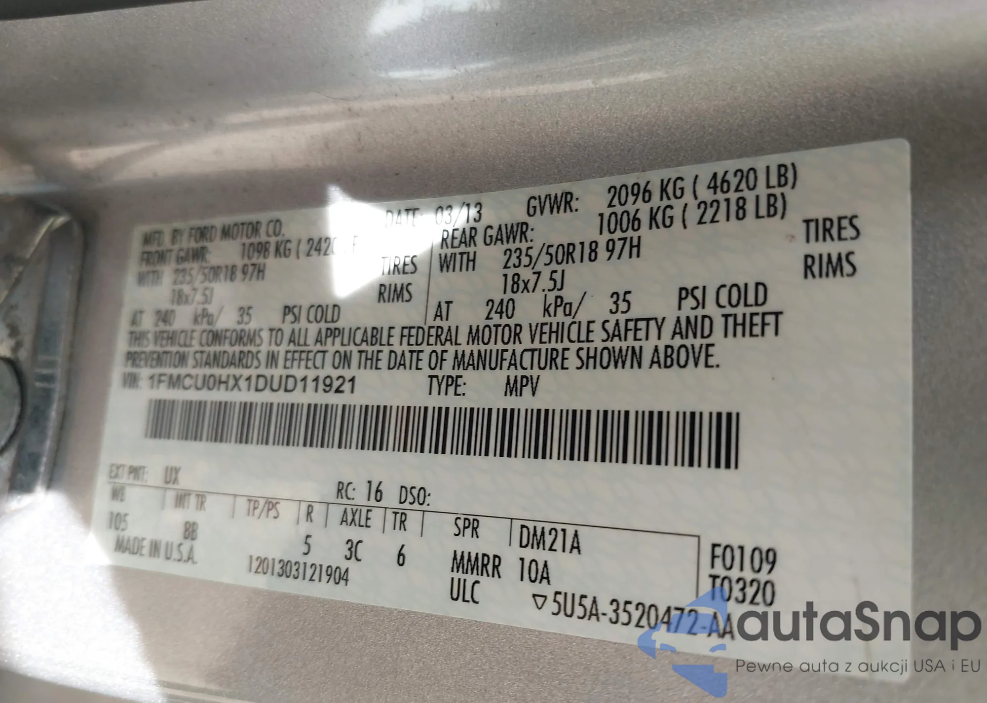VIN: 1FMCU0HX1DUD11921