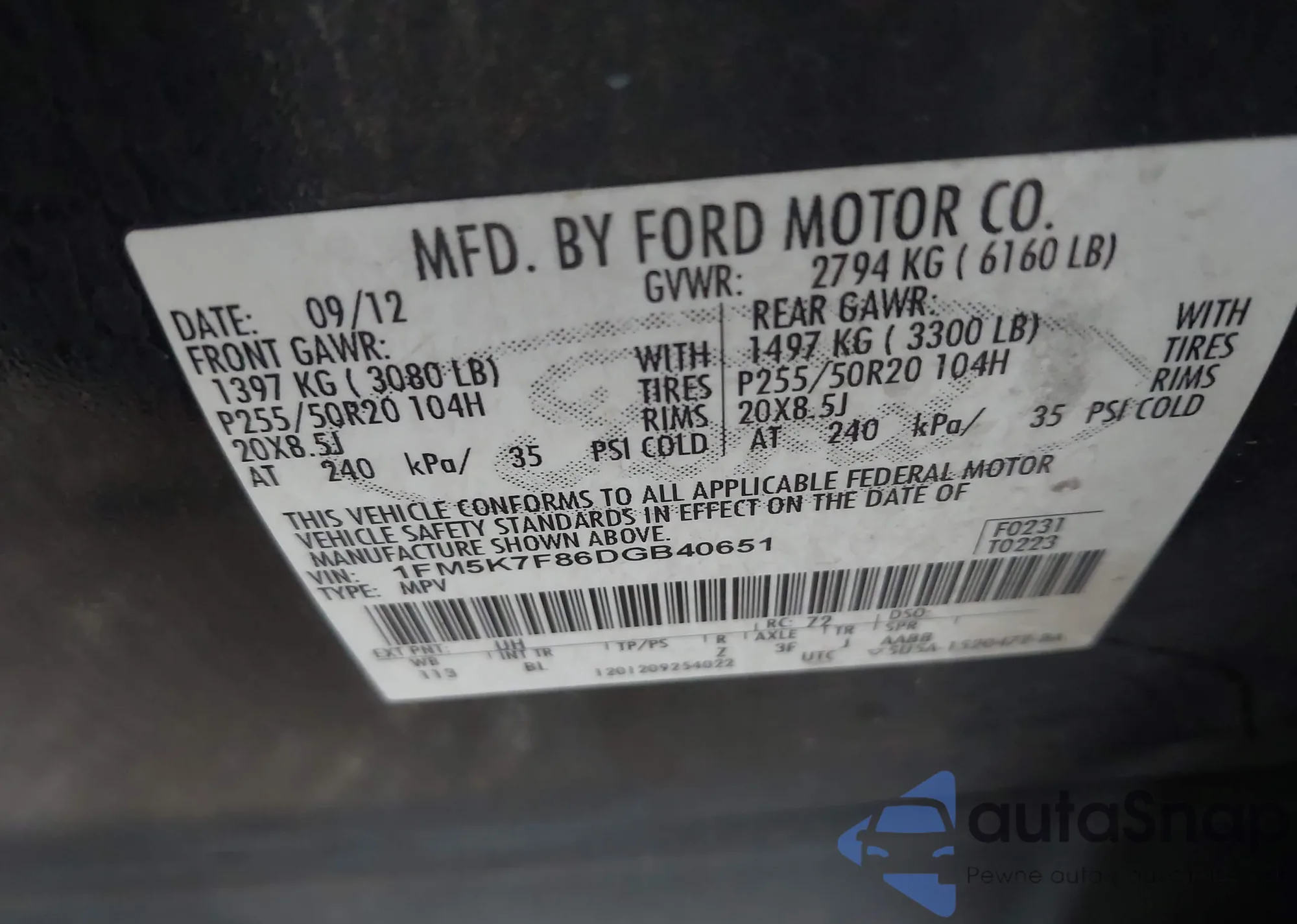 VIN: 1FM5K7F86DGB40651