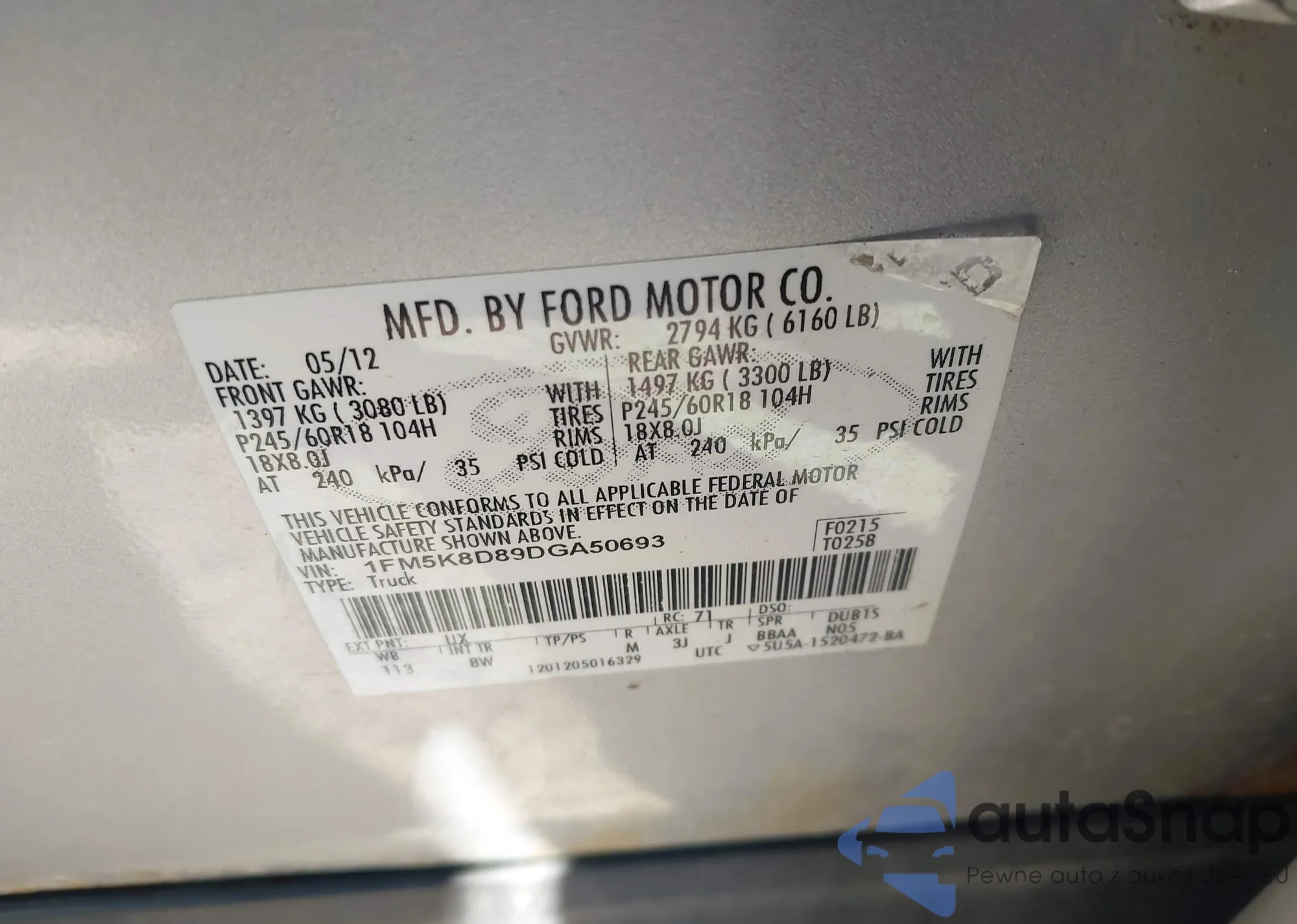 VIN: 1FM5K8D89DGA50693
