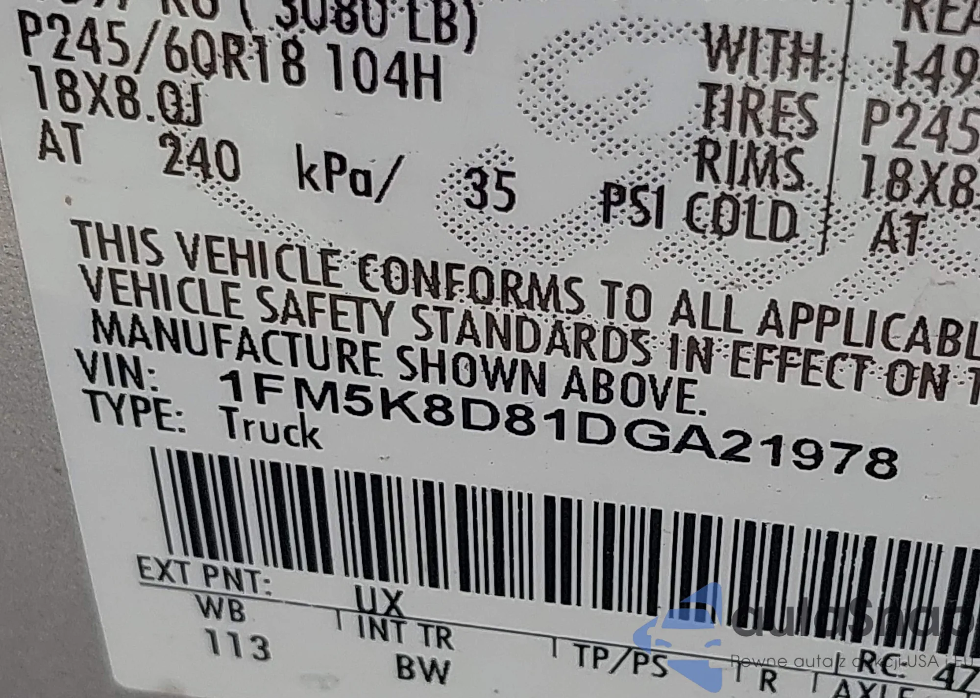 • VIN: 1FM5K8D81DGA21978