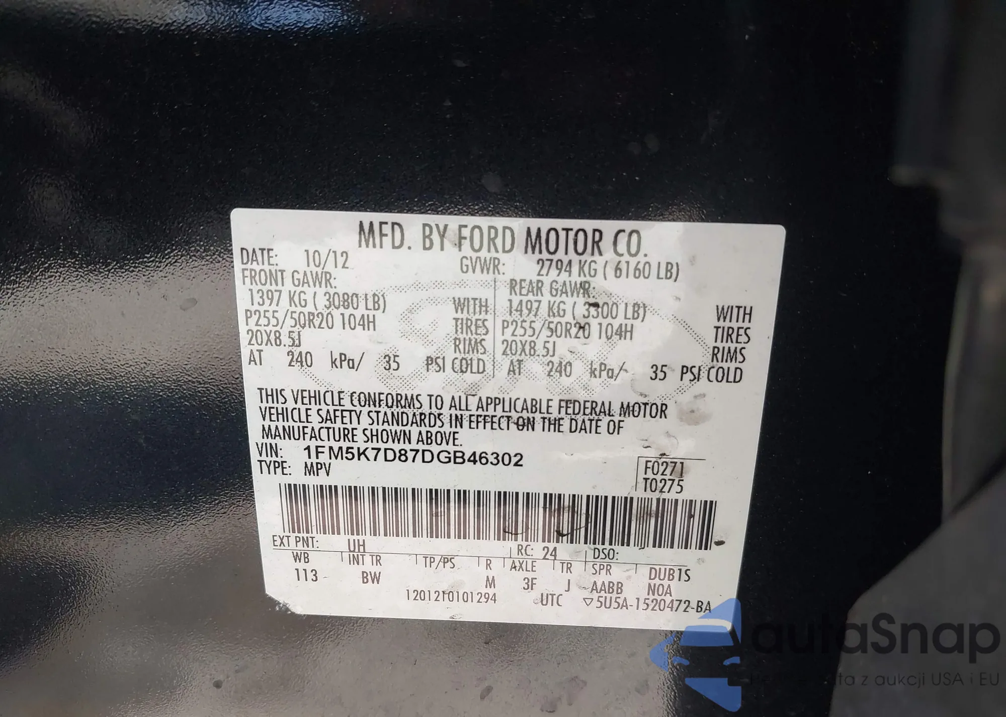 VIN: 1FM5K7D87DGB46302