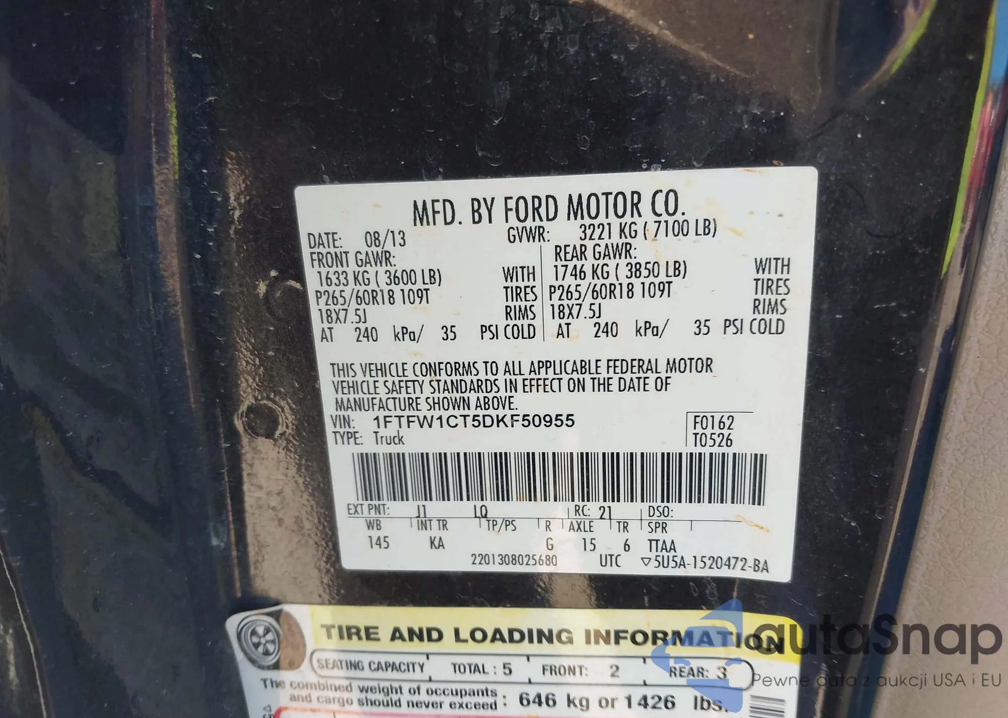 VIN: 1FTFW1CT5DKF50955