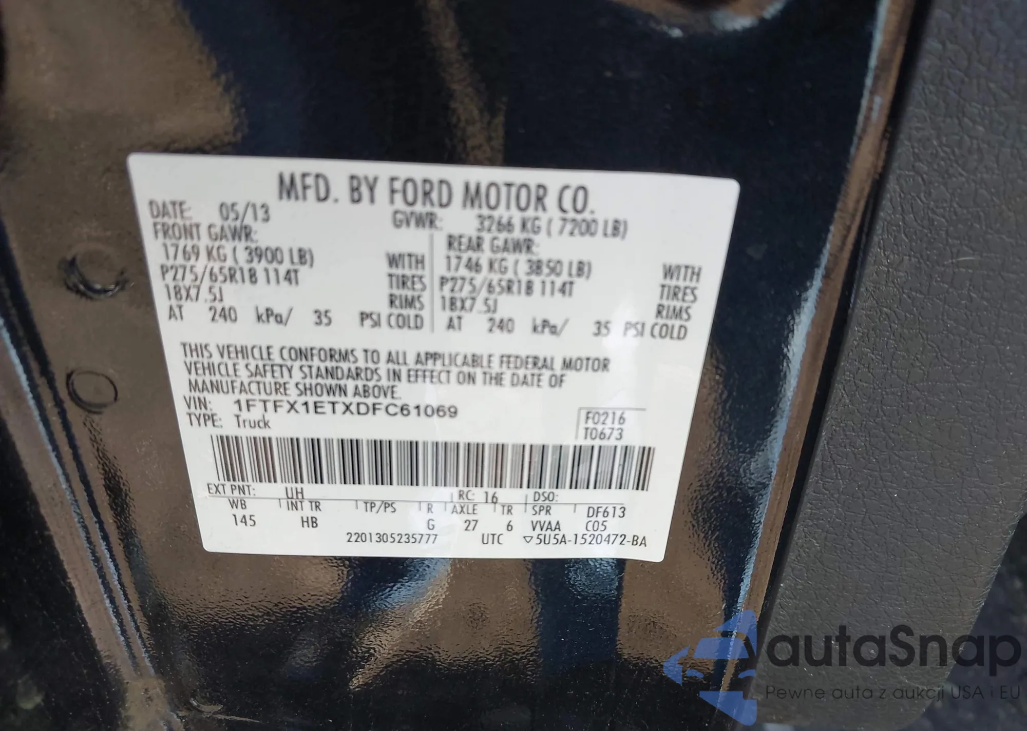 Samochód Ford F-150 2013 (VIN 1FTFX1ETXDFC61069) nie był wcześniej licytowany. Dokumenty są czyste, przebieg odpowiada lub jest niższy niż średnia rynku. Sprzedaje go firma ubezpieczeniowa – polecamy zakup. Dostawa do portu zajmie ok. 6–8 tygodni.