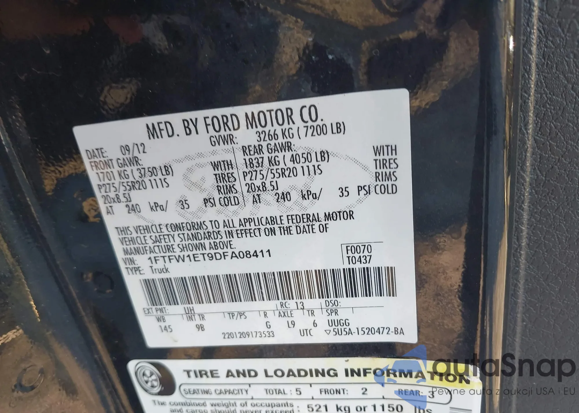 VIN: 1FTFW1ET9DFA08411