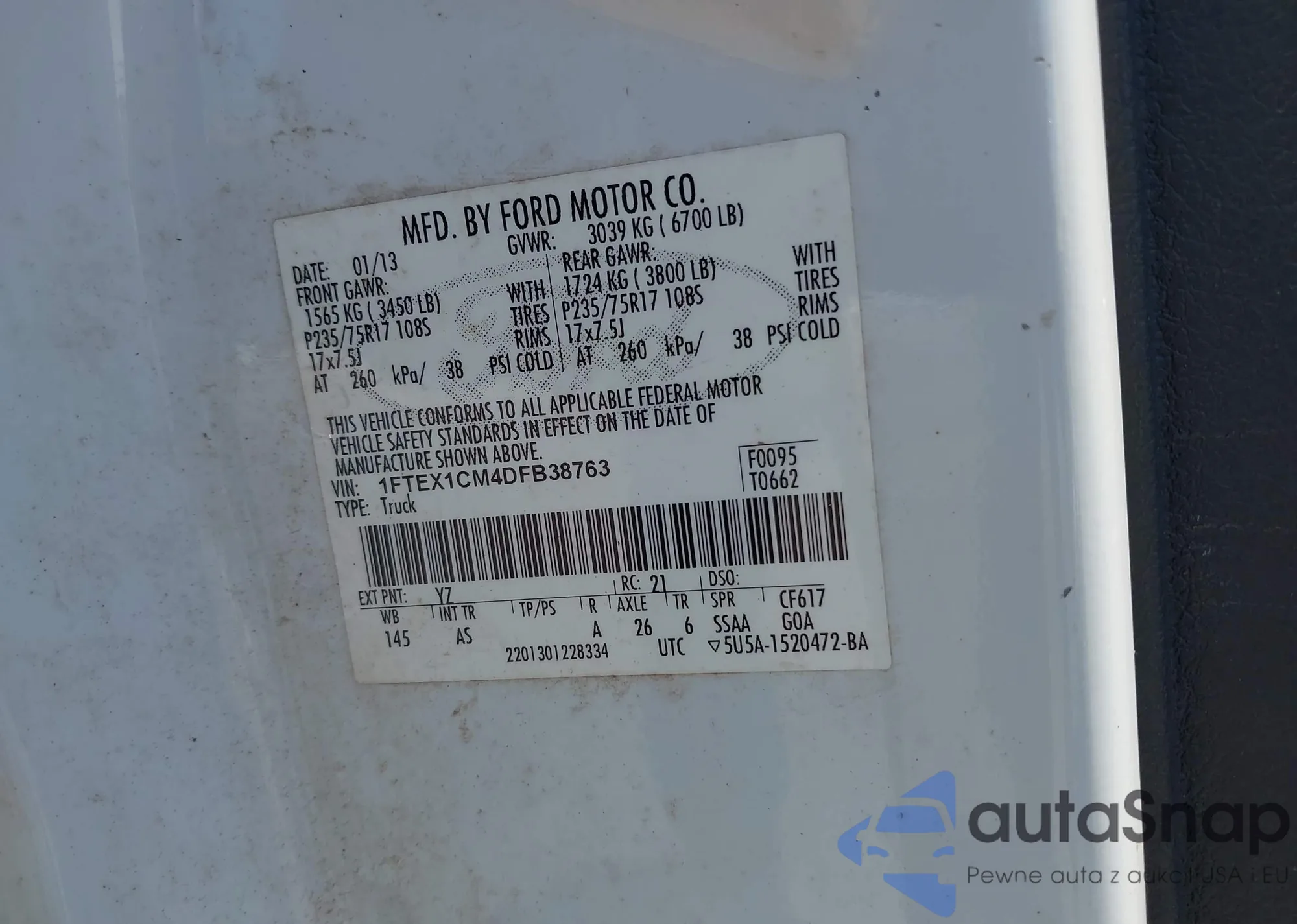 • VIN: 1FTEX1CM4DFB38763
