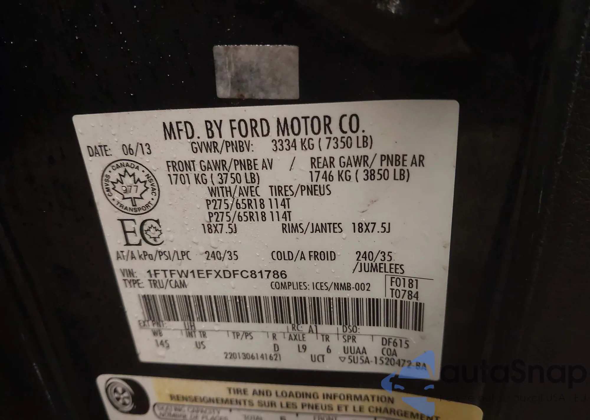 VIN: 1FTFW1EFXDFC81786