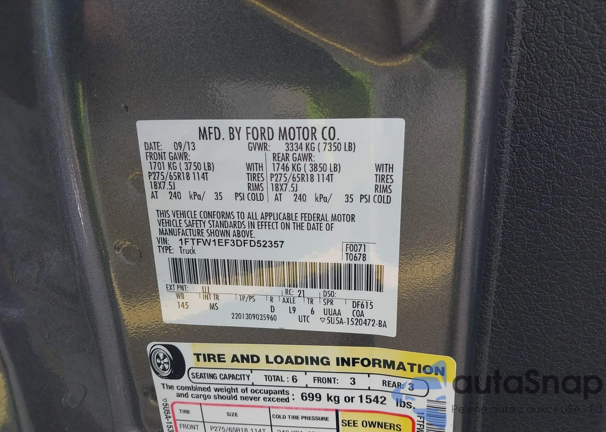 VIN: 1FTFW1EF3DFD52357