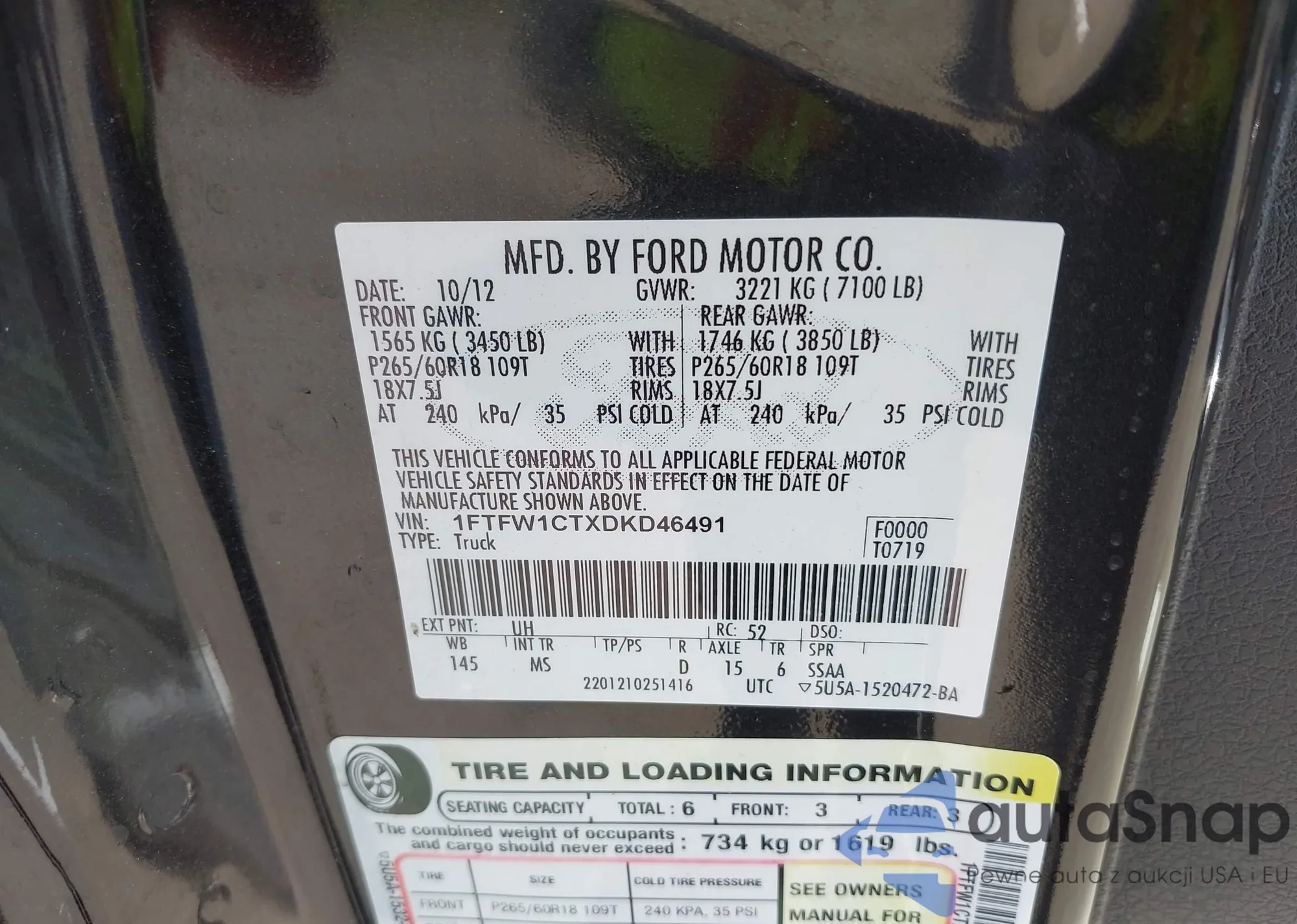 VIN: 1FTFW1CTXDKD46491