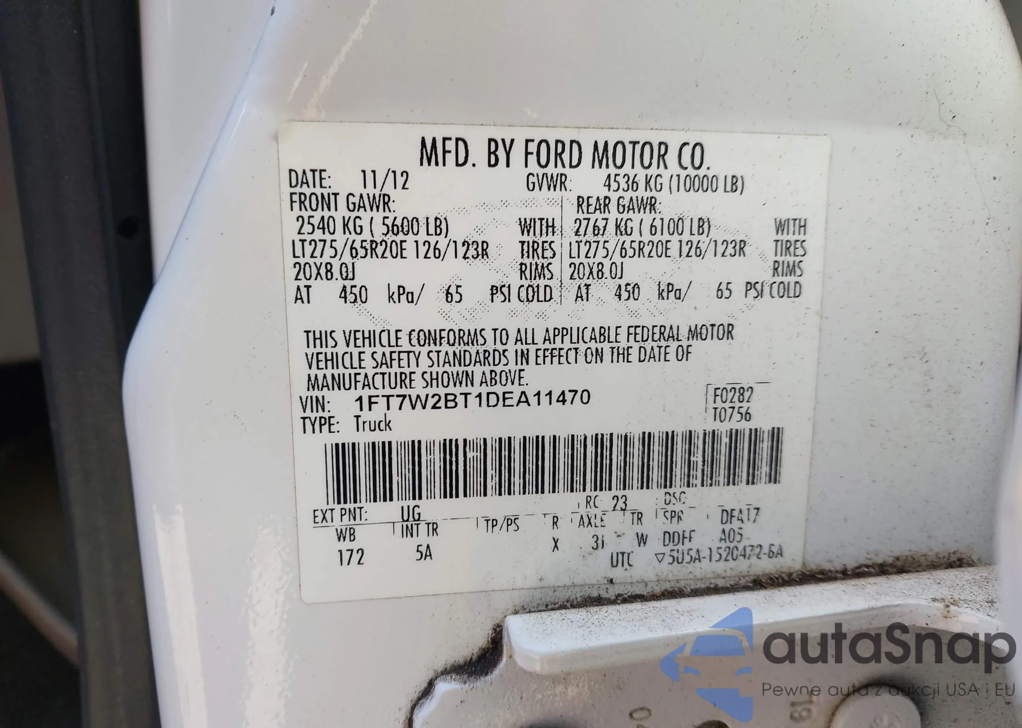 Samochód Ford F250 2013 (VIN 1FT7W2BT1DEA11470) nie był wcześniej licytowany. Dokumenty są czyste, przebieg odpowiada lub jest niższy niż średnia rynku. Sprzedaje go firma ubezpieczeniowa – polecamy zakup. Dostawa do portu zajmie ok. 6–8 tygodni.