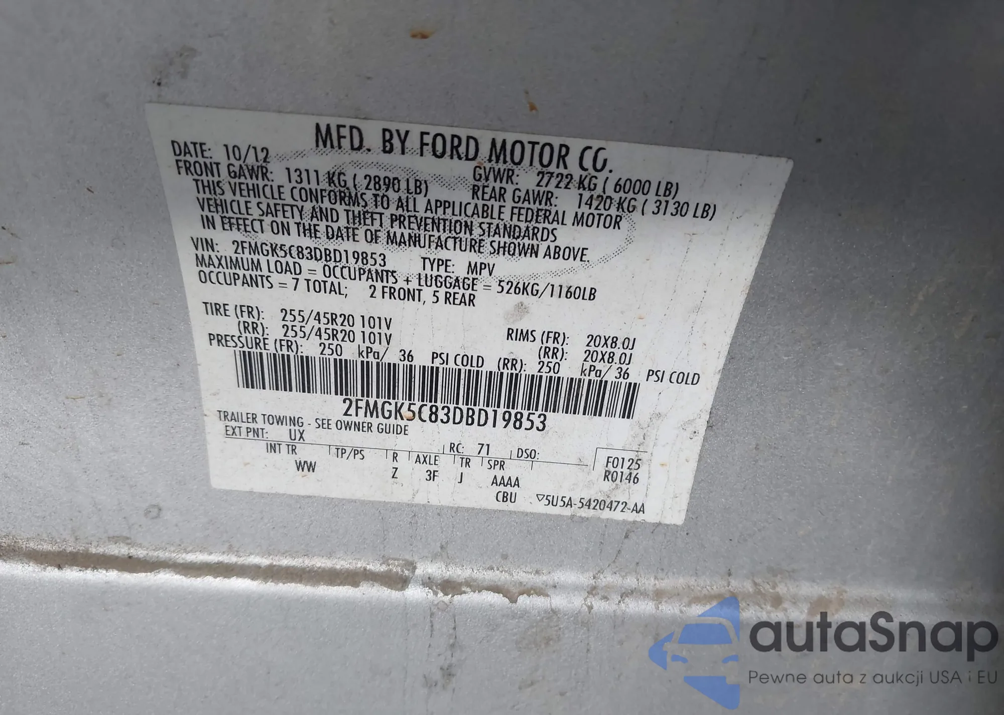 VIN: 2FMGK5C83DBD19853
