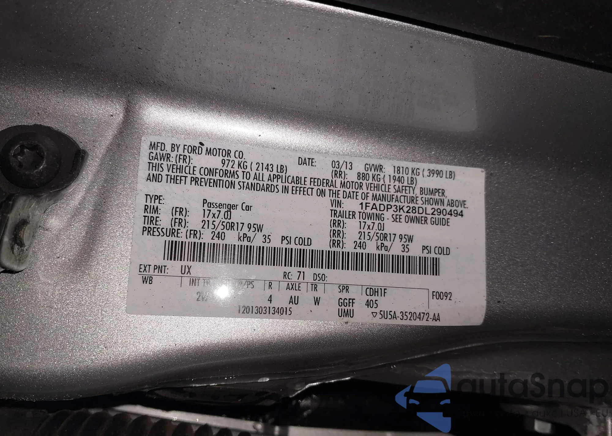 VIN: 1FADP3K28DL290494