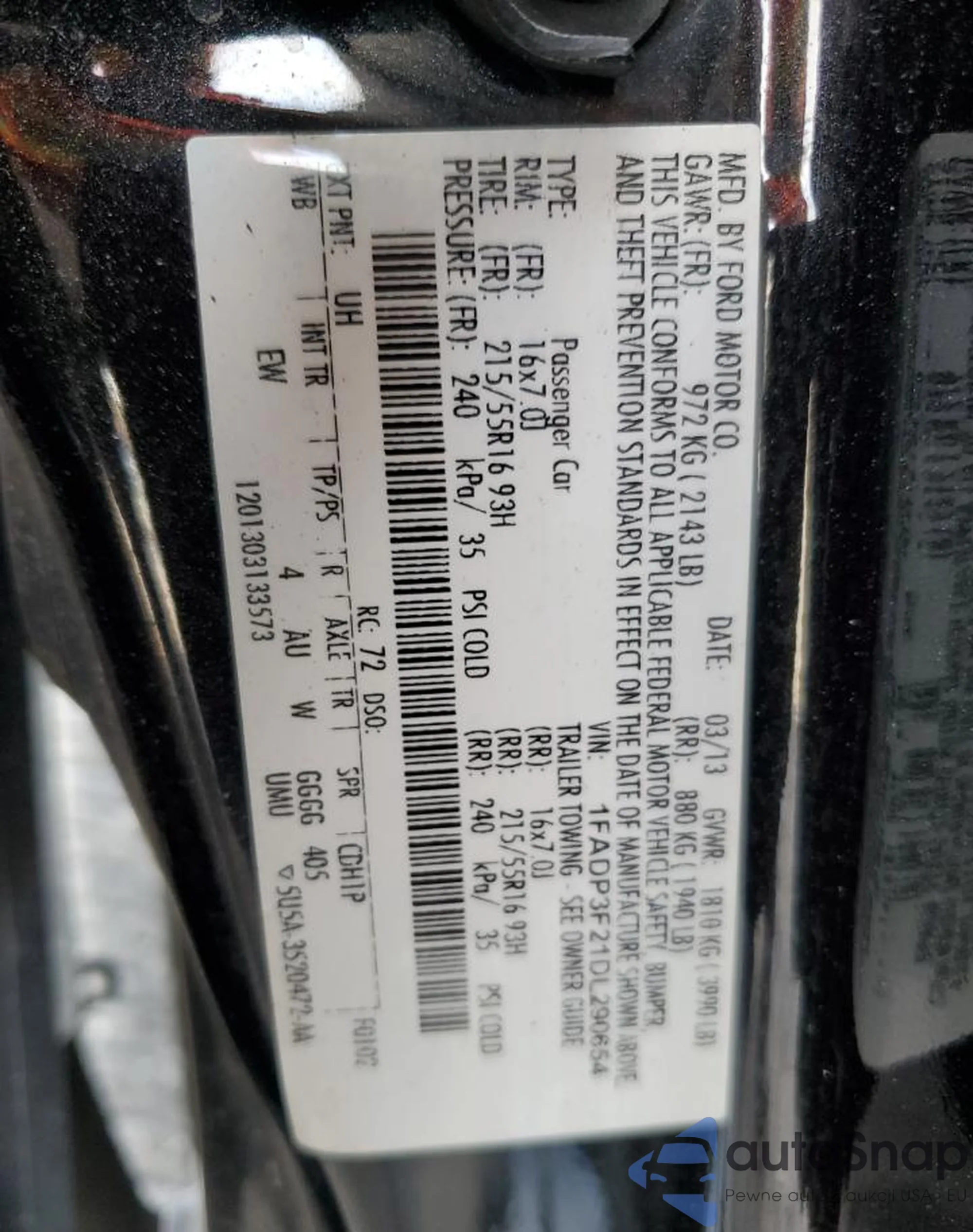 VIN: 1FADP3F21DL290654