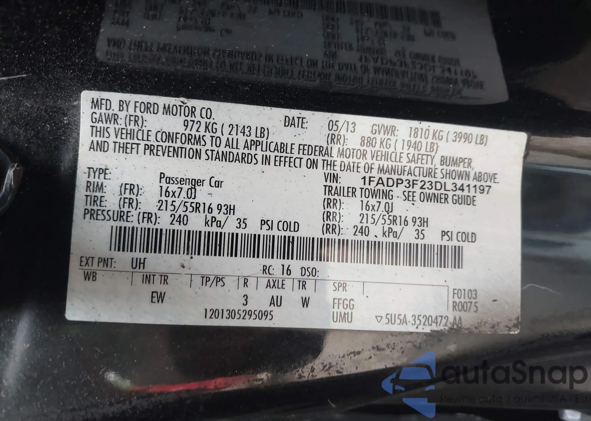 VIN: 1FADP3F23DL341197