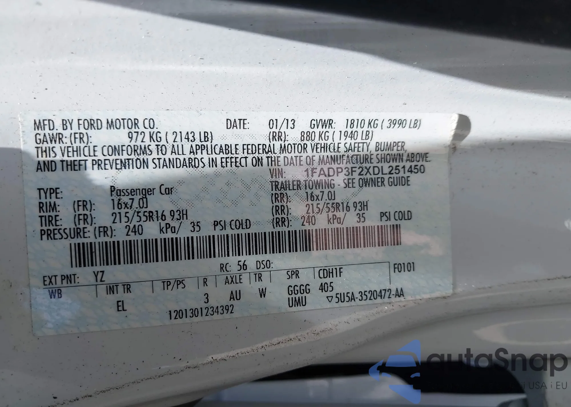 VIN: 1FADP3F2XDL251450