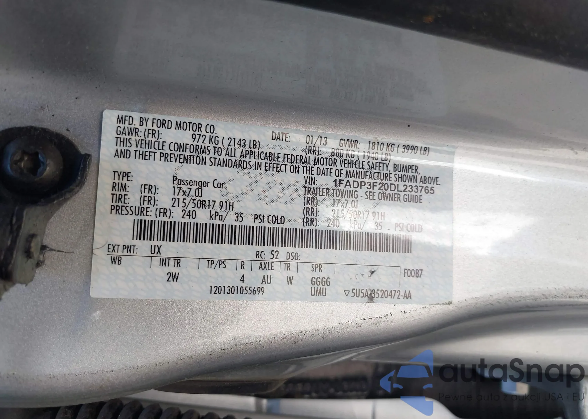 VIN: 1FADP3F20DL233765