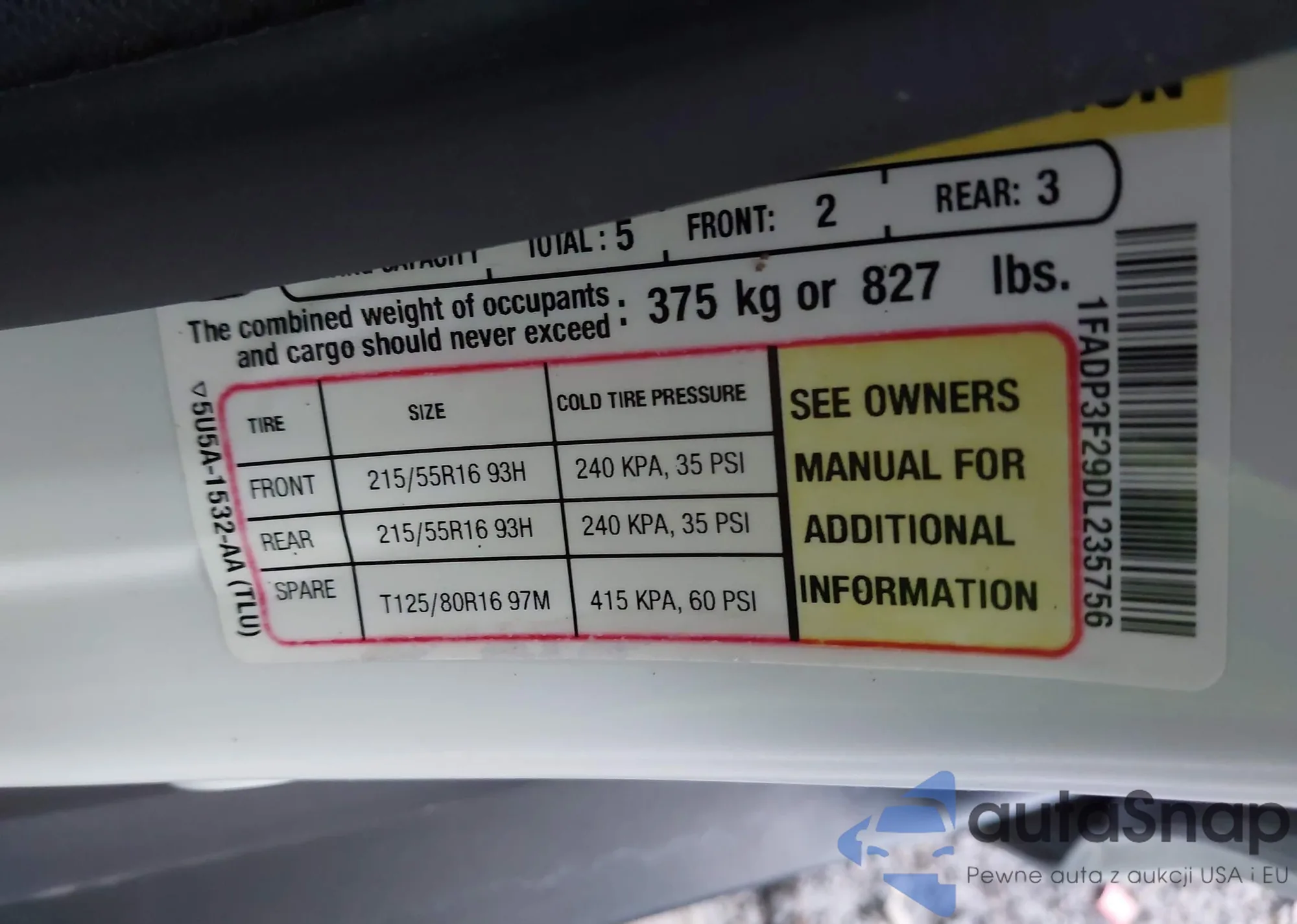 VIN: 1FADP3F29DL235756