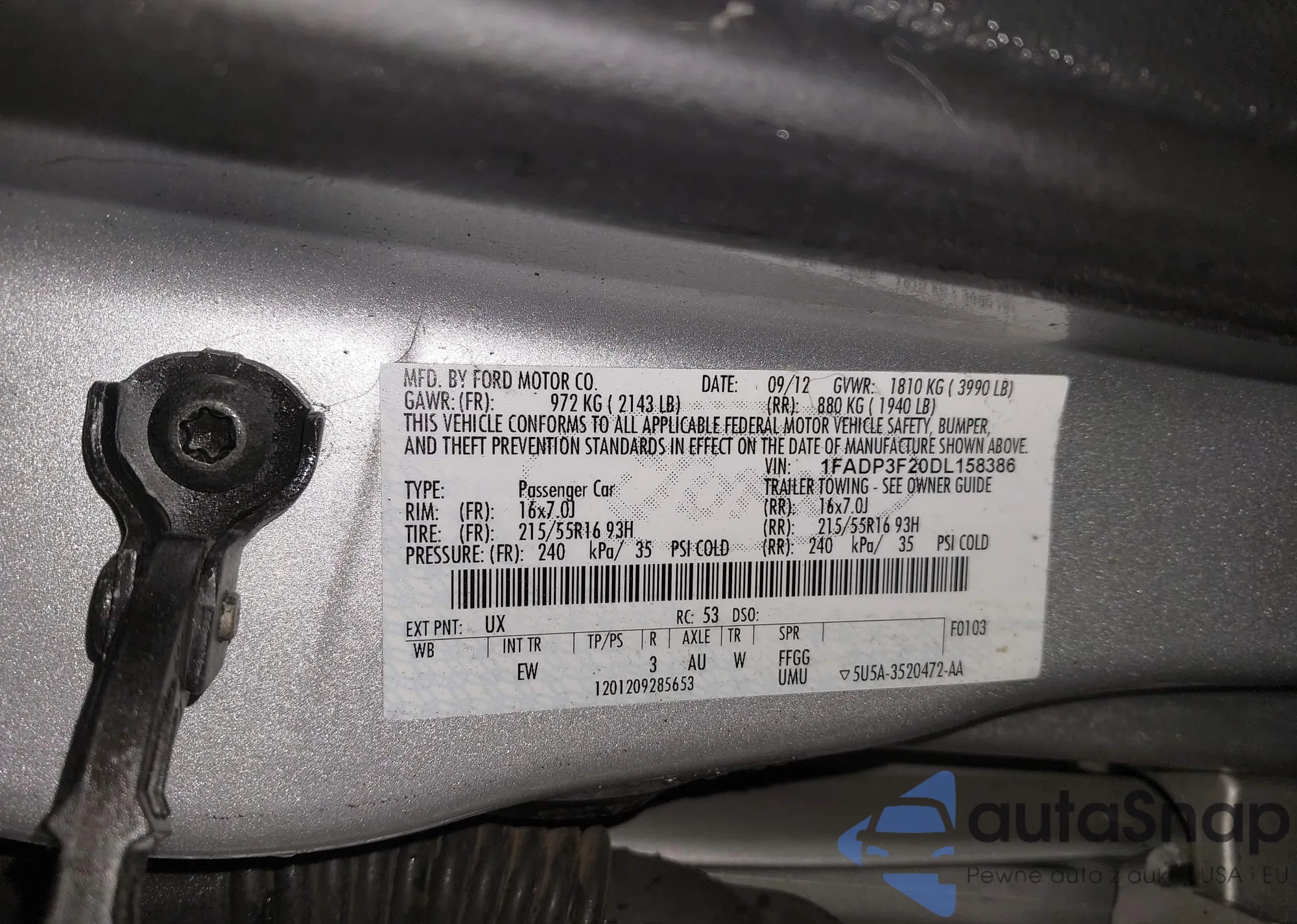 VIN: 1FADP3F20DL158386