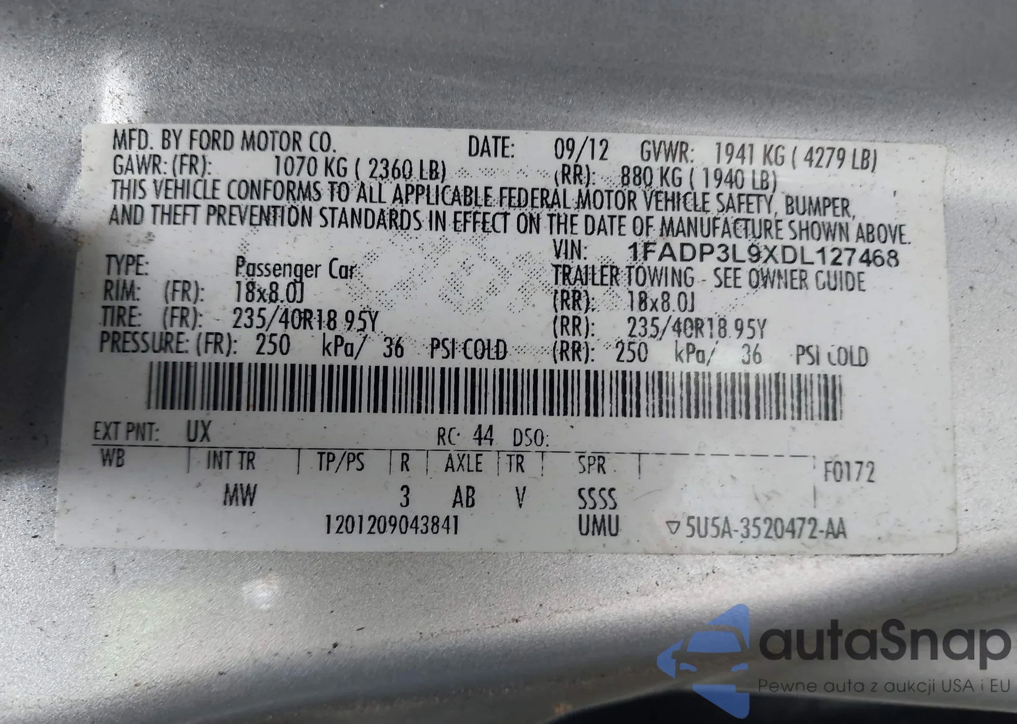 VIN: 1FADP3L9XDL127468