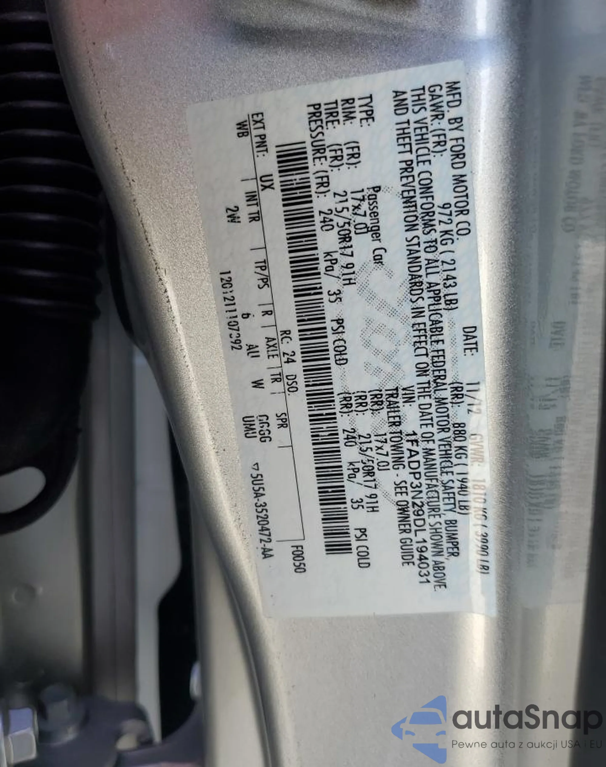 VIN: 1FADP3N29DL194031
