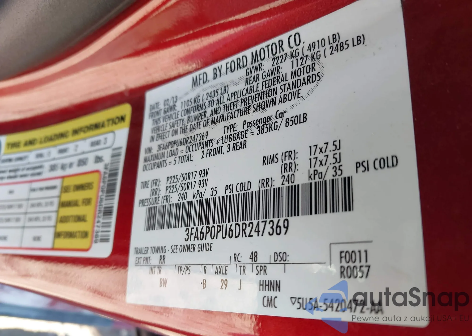 VIN: 3FA6P0PU6DR247369