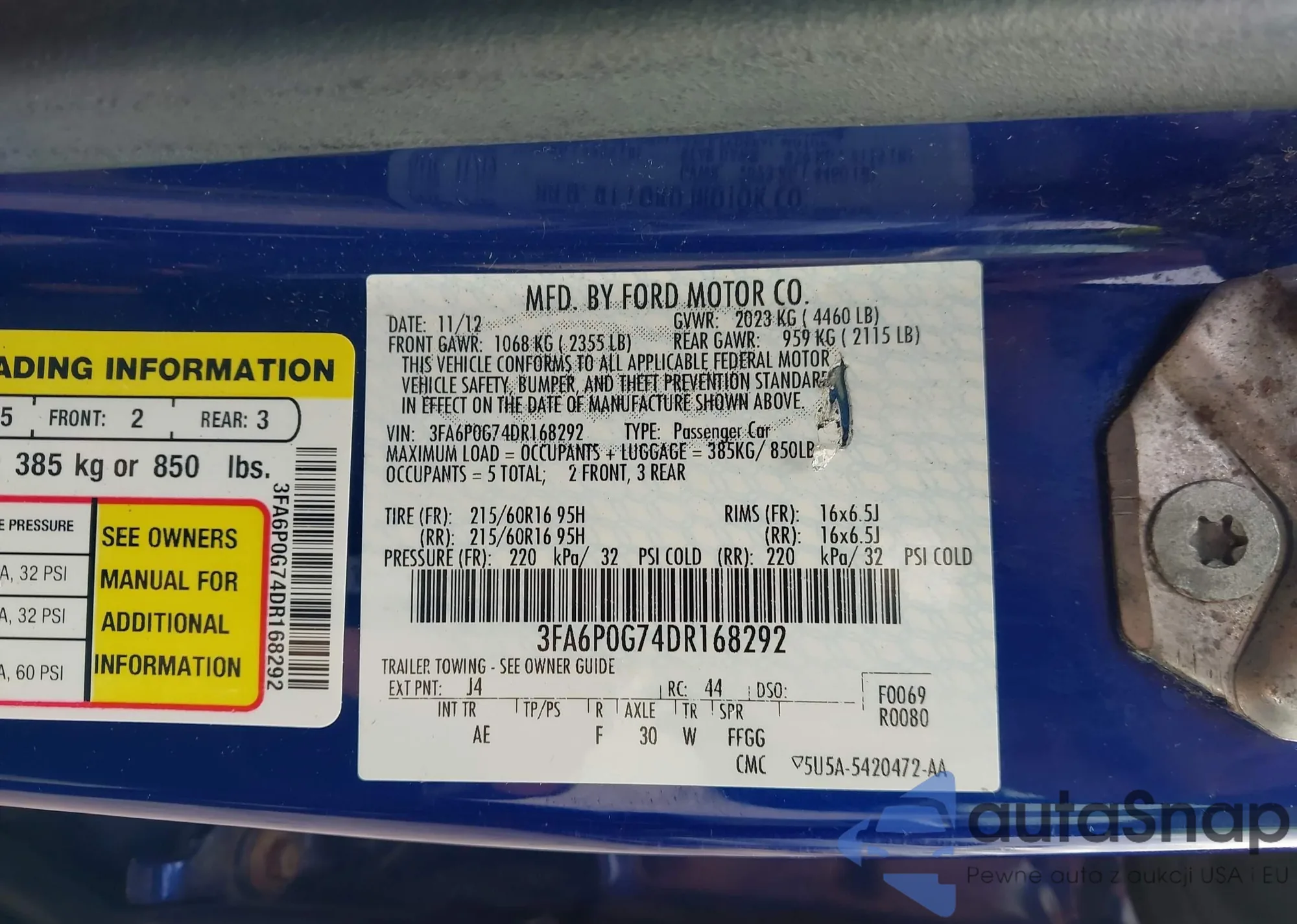 VIN: 3FA6P0G74DR168292
