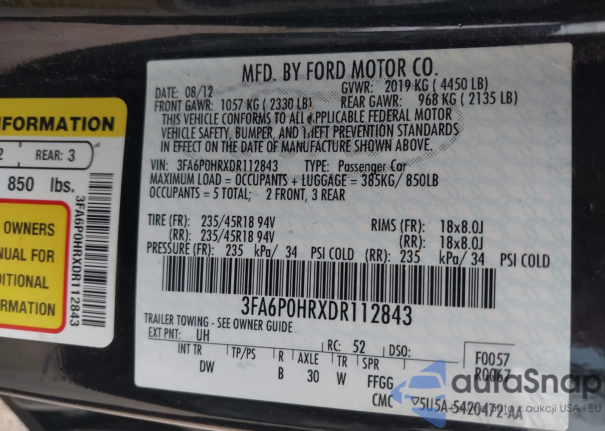 VIN: 3FA6P0HRXDR112843