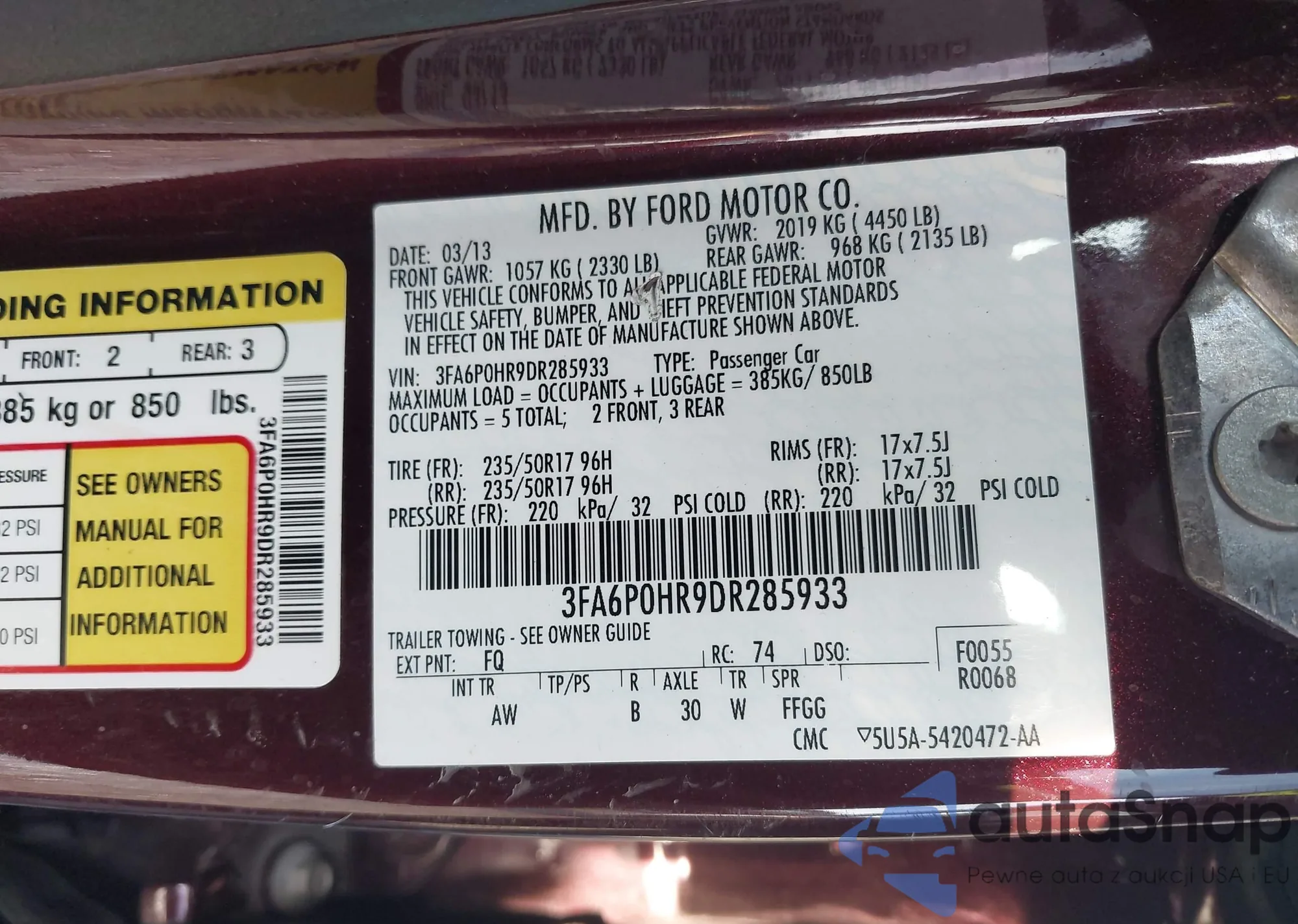 VIN: 3FA6P0HR9DR285933