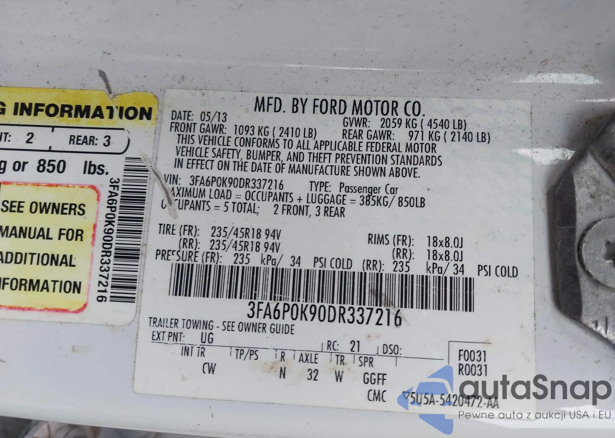 • VIN: 3FA6P0K90DR337216