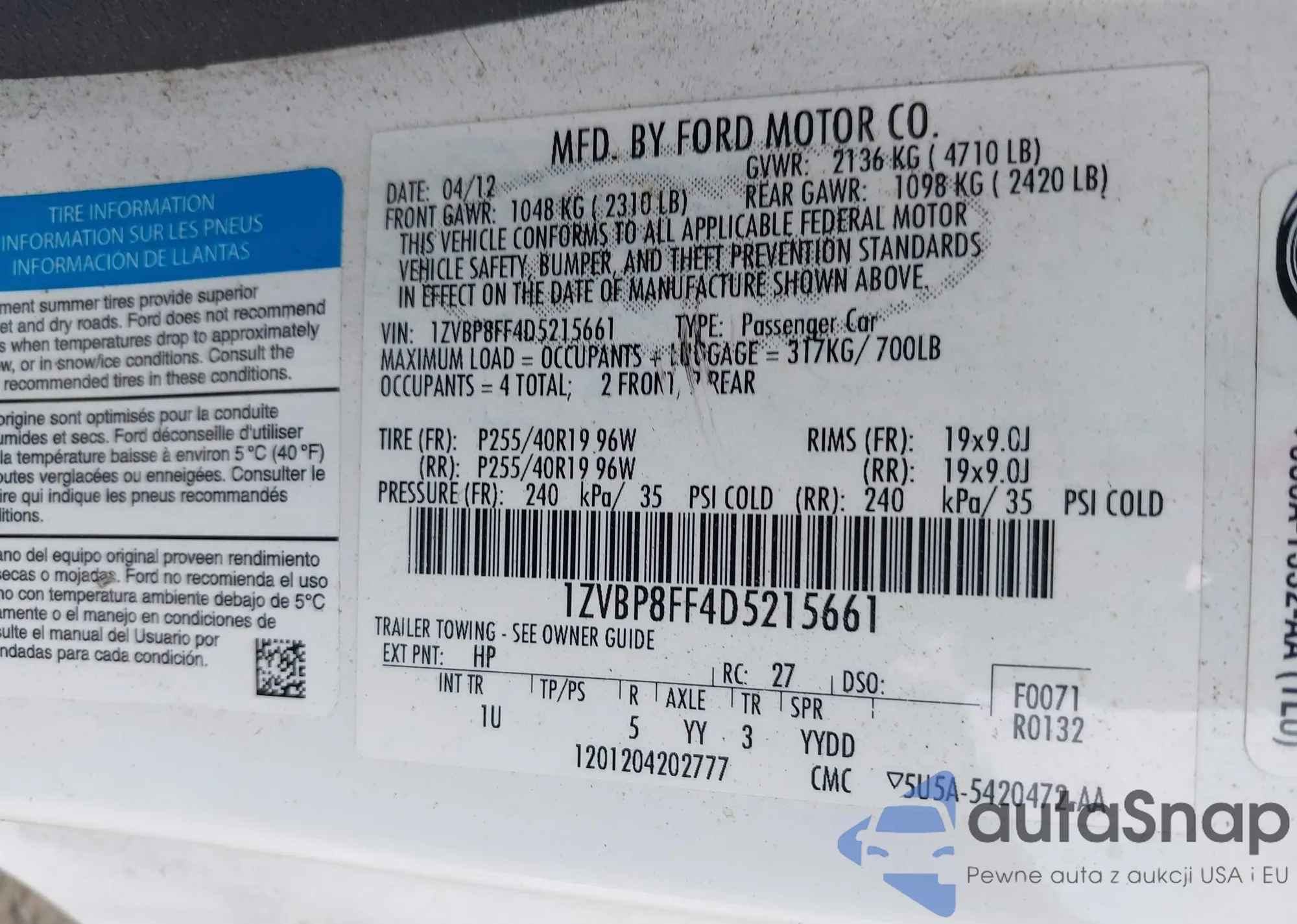 VIN: 1ZVBP8FF4D5215661