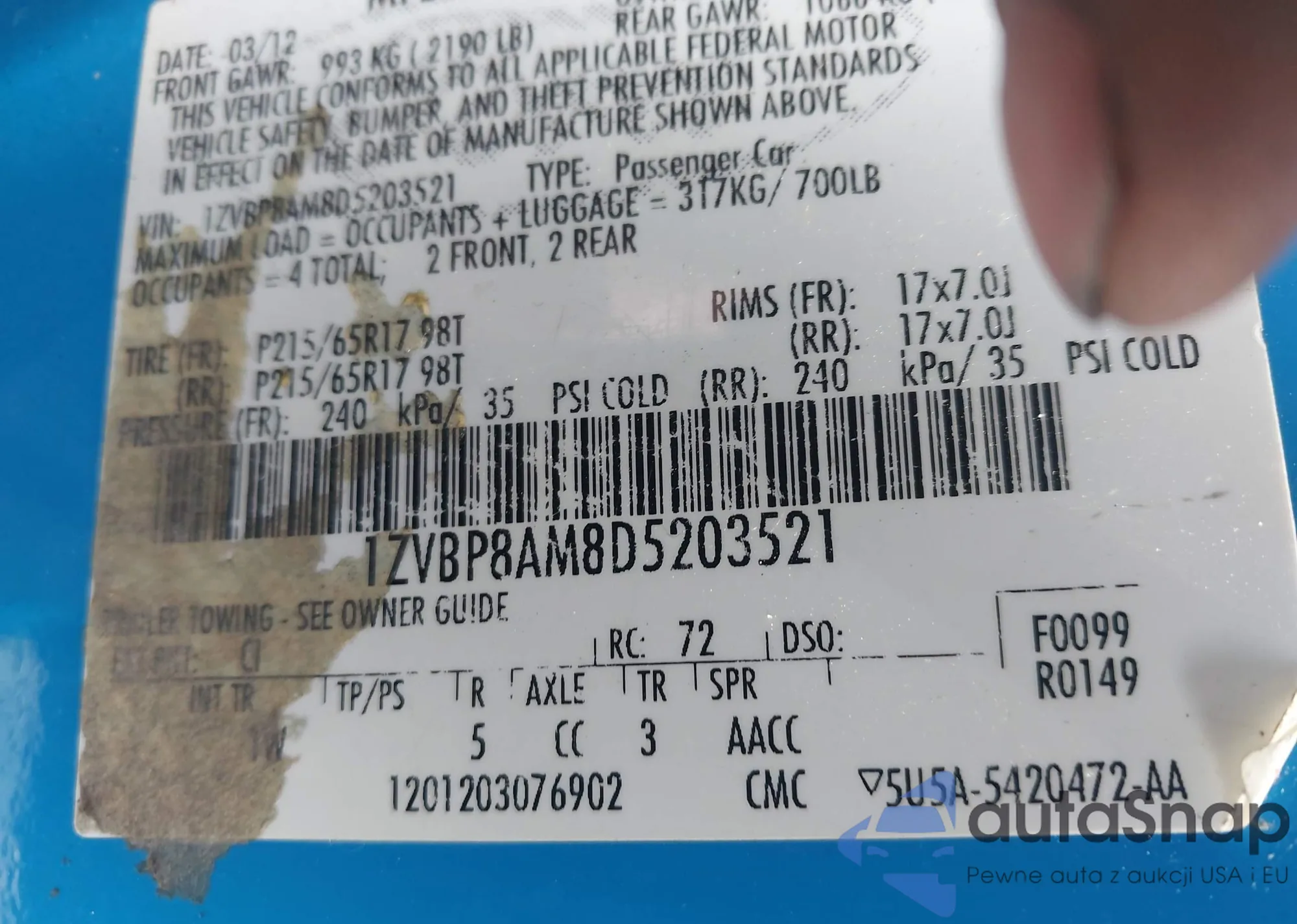 VIN: 1ZVBP8AM8D5203521