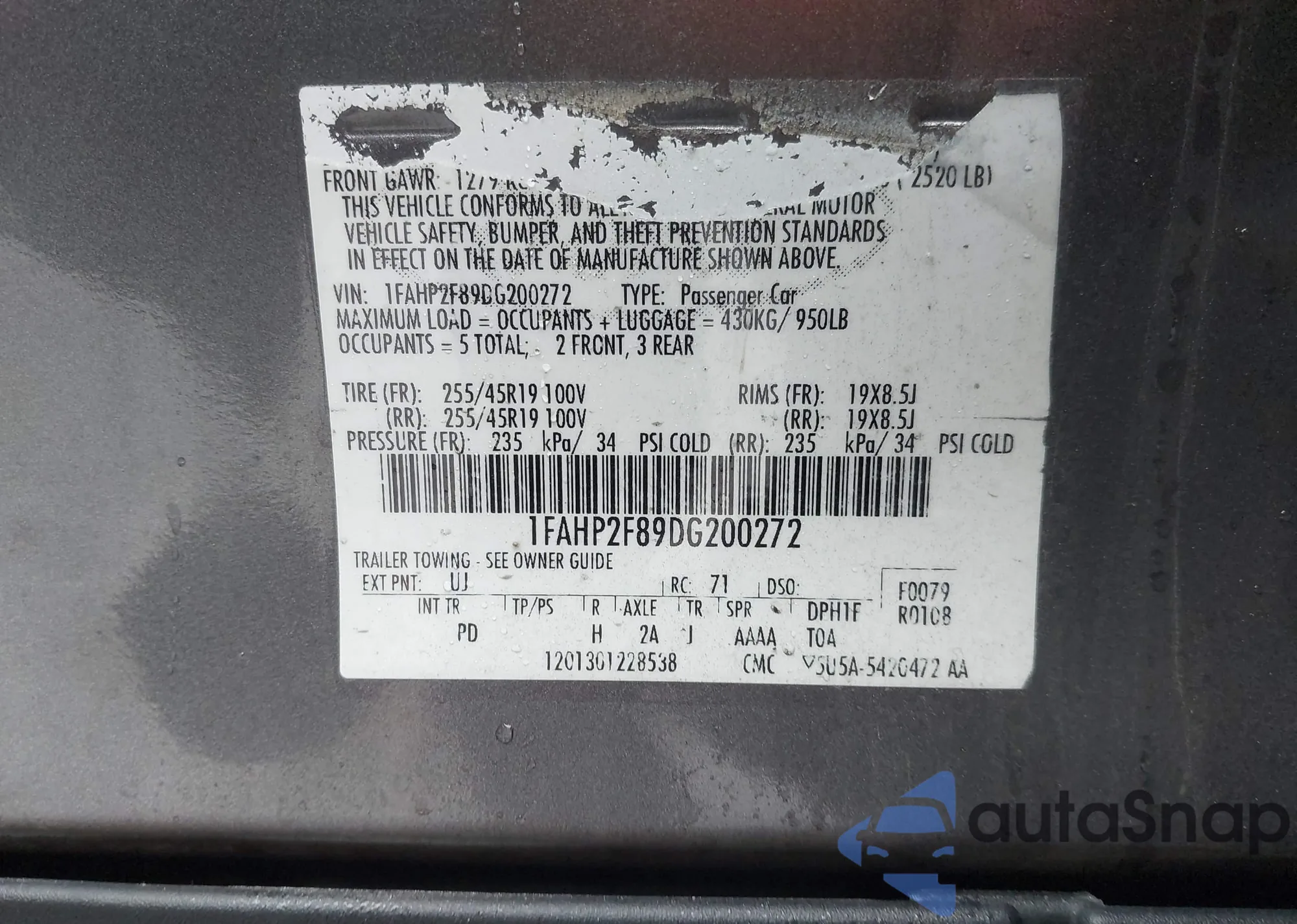 VIN: 1FAHP2F89DG200272