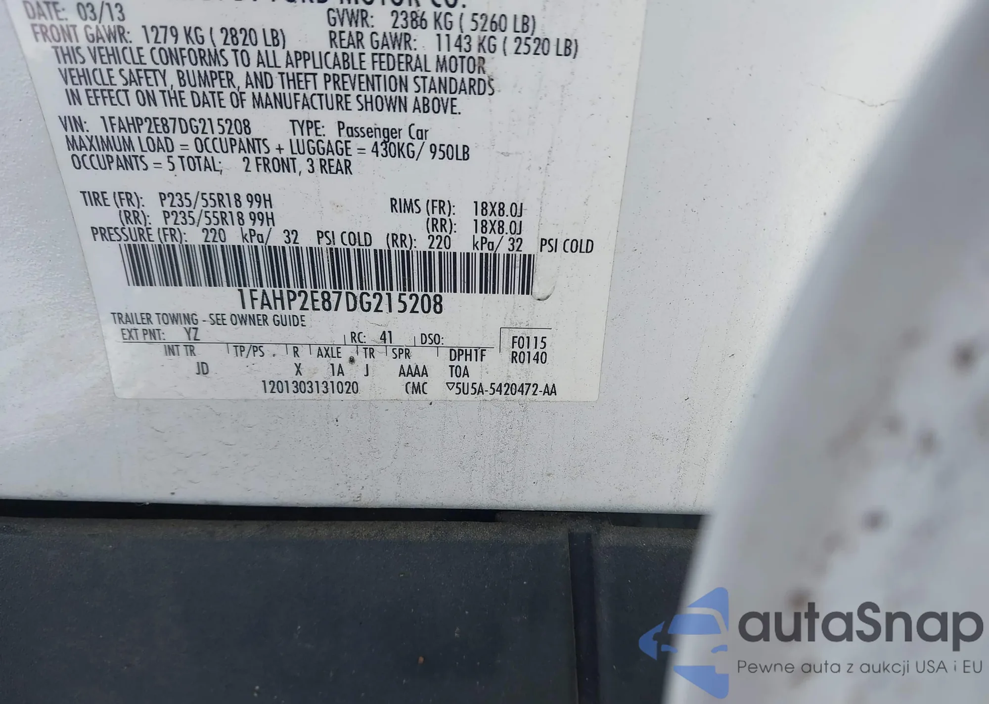 VIN: 1FAHP2E87DG215208
