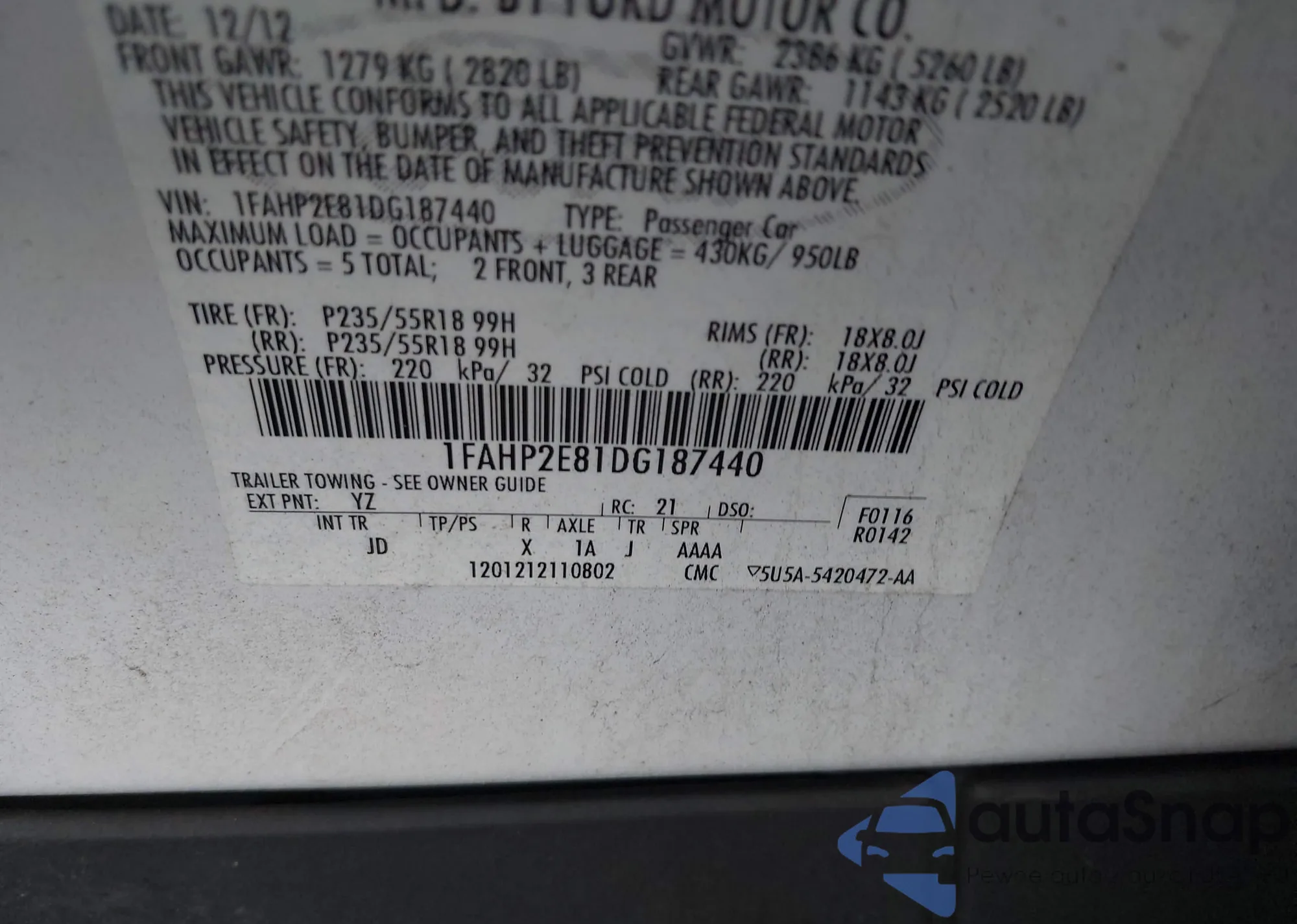 Samochód Ford Taurus 2013 (VIN 1FAHP2E81DG187440) nie był wcześniej licytowany. Dokumenty są czyste, przebieg odpowiada lub jest niższy niż średnia rynku. Sprzedaje go firma ubezpieczeniowa – polecamy zakup. Dostawa do portu zajmie ok. 6–8 tygodni.