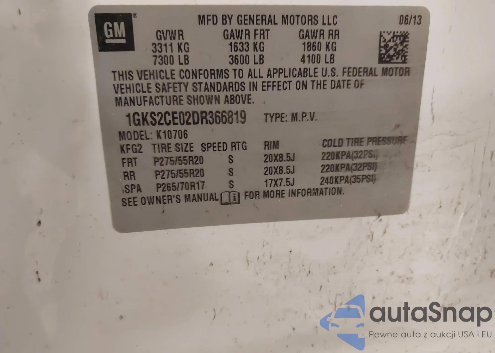 • VIN: 1GKS2CE02DR366819