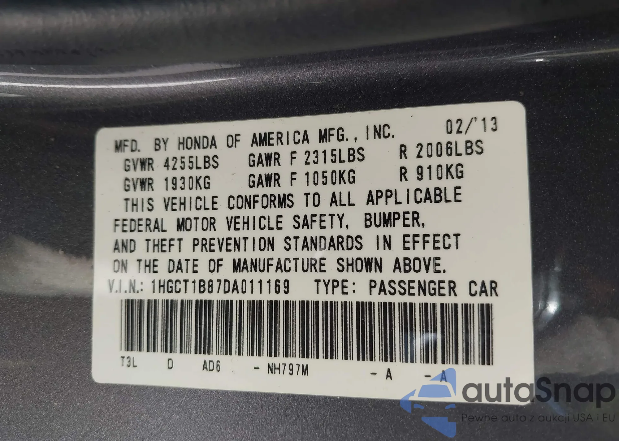 VIN: 1HGCT1B87DA011169