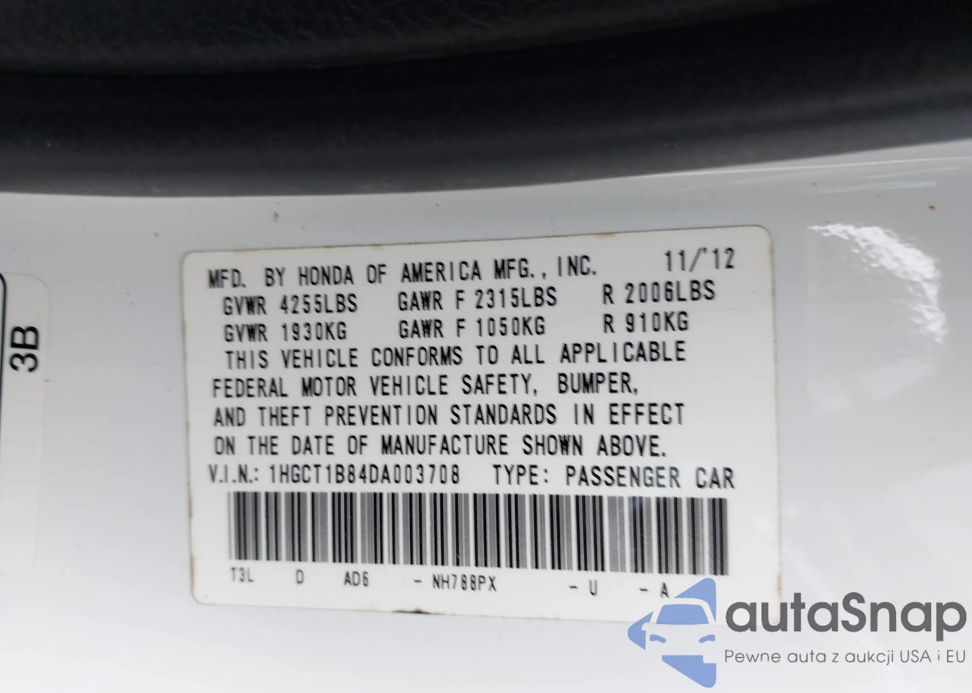VIN: 1HGCT1B84DA003708