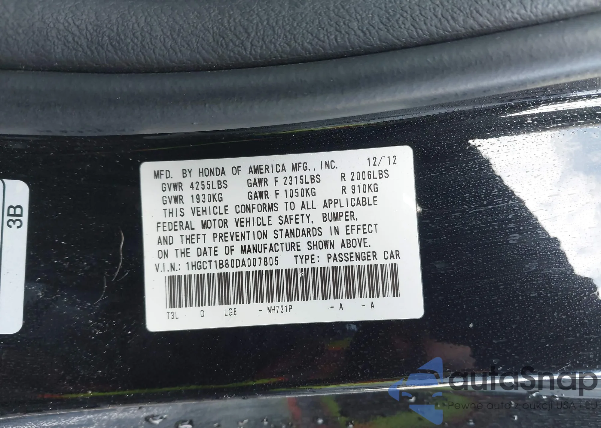 Samochód Honda Accord 2013 (VIN 1HGCT1B80DA007805) ma dokumenty uniemożliwiające rejestrację. Mogą pojawić się trudności przy eksporcie i rejestracji. Skontaktuj się z ekspertami AutaSnap w celu znalezienia alternatywy.
